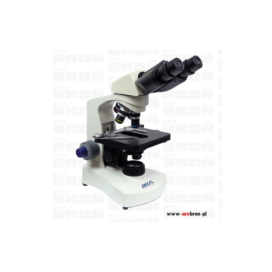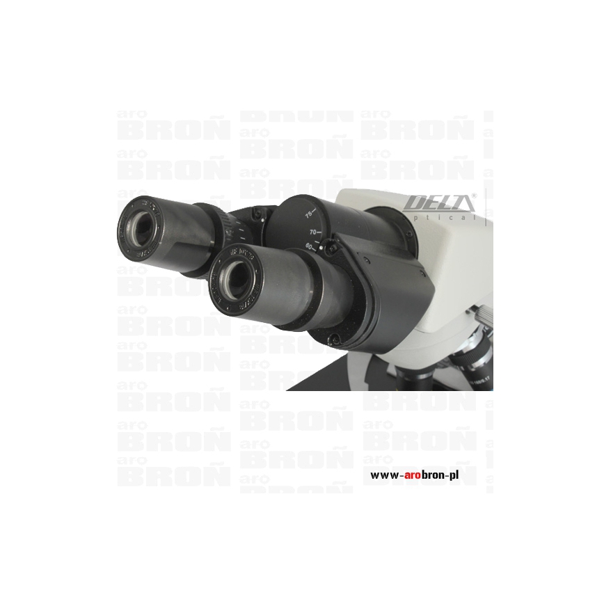 - Ta wersja mikroskopu posiada głowicę binokularową typu Siedentopf - dwa tubusy okularowe z regulacją rozstawu oczu. Głowica jest obracana o 360° i pochylona pod kątem 30°. Okulary szerokopolowe WF10x pozwalają na obserwacje w polu widzenia o średnicy 18 mm.