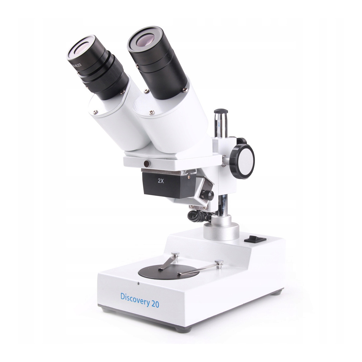 Mikroskop Delta Optical Discovery 20 - to stereoskopowy mikroskop renomowanej firmy Delta Optical. Mikroskop posiada obrotowy zmienniacz obiektywów co czyni go uniwersalnym. Dzięki temu mamy możliwość uzyskania powiększenia 20x. Mikroskop ma możliwość zamontowanie specjalnej kamery w miejsce jednego z tubusów okularowych . Posiada system oświetlenia do obserwacji preparatów na szkiełkach przedmiotowych przez światło odbite (górne - tzw. EPI). Oświetlenie odbite umożliwia obserwowanie obiektów nieprzeźroczystych (np. owady, minerały, tkaniny, monety). Oświetlenie diodowe LED zapobiega nagrzewaniu się preparatu i mikroskopu (brak ryzyka poparzenia) i gwarantuje kilkadziesiąt tysięcy godzin pracy. Podwójna regulacja ostrości: współosiowe pokrętło makrometryczne i mikrometryczne - ułatwia precyzyjną regulacją ostrości, co jest szczególnie ważne szczególnie przy dużych powiększeniach. Mikroskop Discovery 20 posiada opcje zasilania bateryjnego, dzięki czemu można wykorzystać mikroskop w miejscach gdzie nie ma dostępu do sieci elektrycznej. Solidny, metalowy, a zarazem lekki korpus gwarantuje wieloletnią niezawodność.