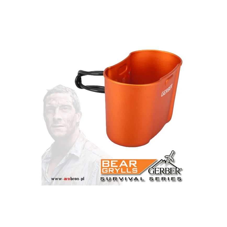 Ścianki manierki GERBER BG WATER CANTEEN posiadają wyraźne teksturowanie, które zapobiega wyślizgiwaniu się manierki pomimo mokrych rąb lub noszonych rękawiczek. Korek manierki posiada dodatkowe uszczelnienie w postaci o-ringów zapewniającą należytą szczelność. Kubek ( z uchwytem ) wykonano z aluminium typu "food grade" umożliwiającego gotowanie wody, nie pochałaniającego również zapachów i smaków żywności oraz płynów. Do przenoszenia manierki i kubka, służy dołączany do zestawu pokrowiec z nylonu balistycznego.