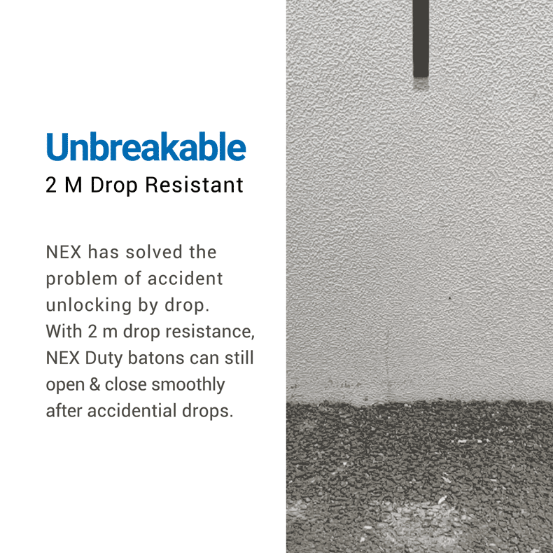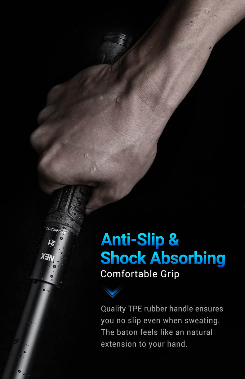 - Pałka teleskopowa wykonana z hartowanej stali z oryginalną blokadą NexLock zwalnianą za pomocą przycisku.