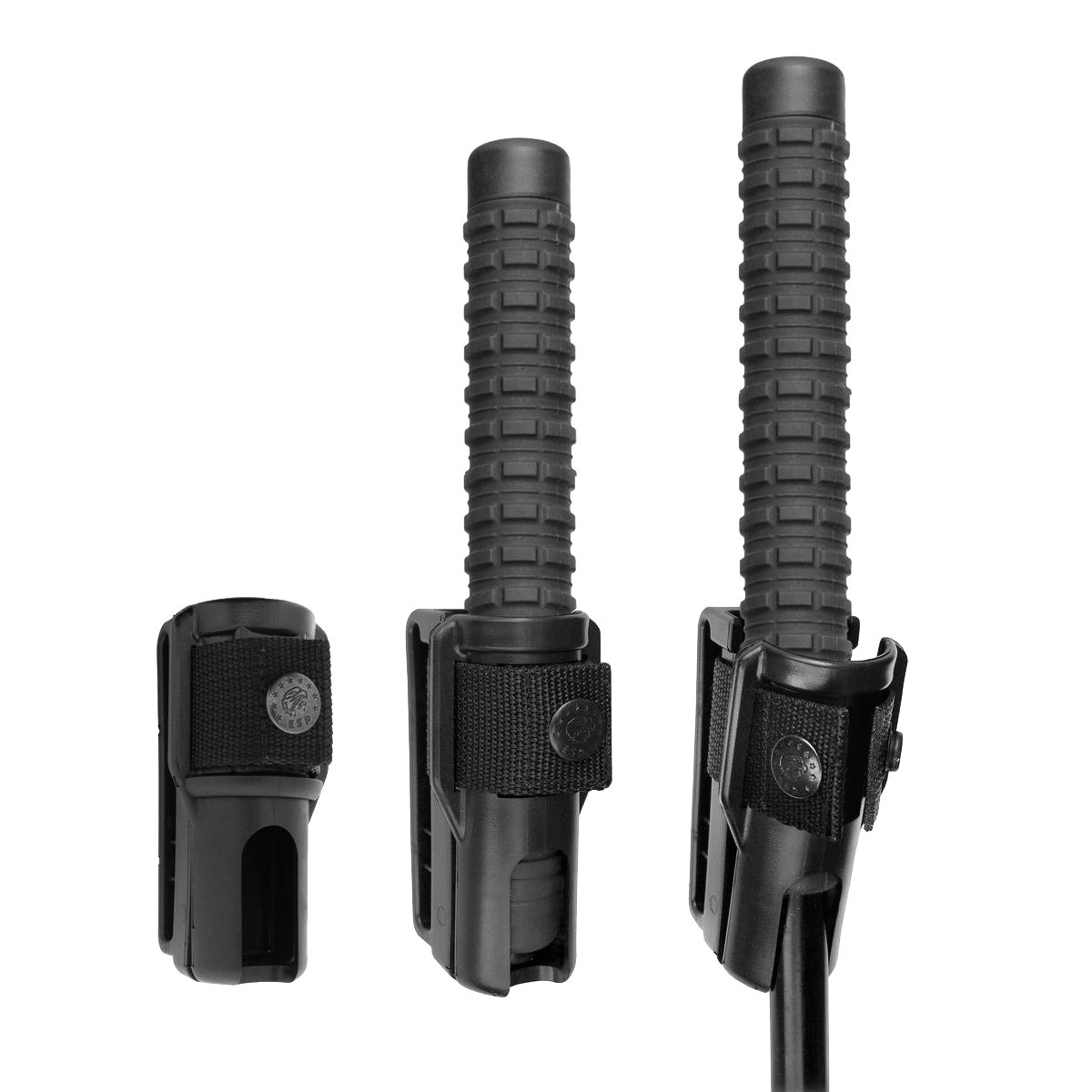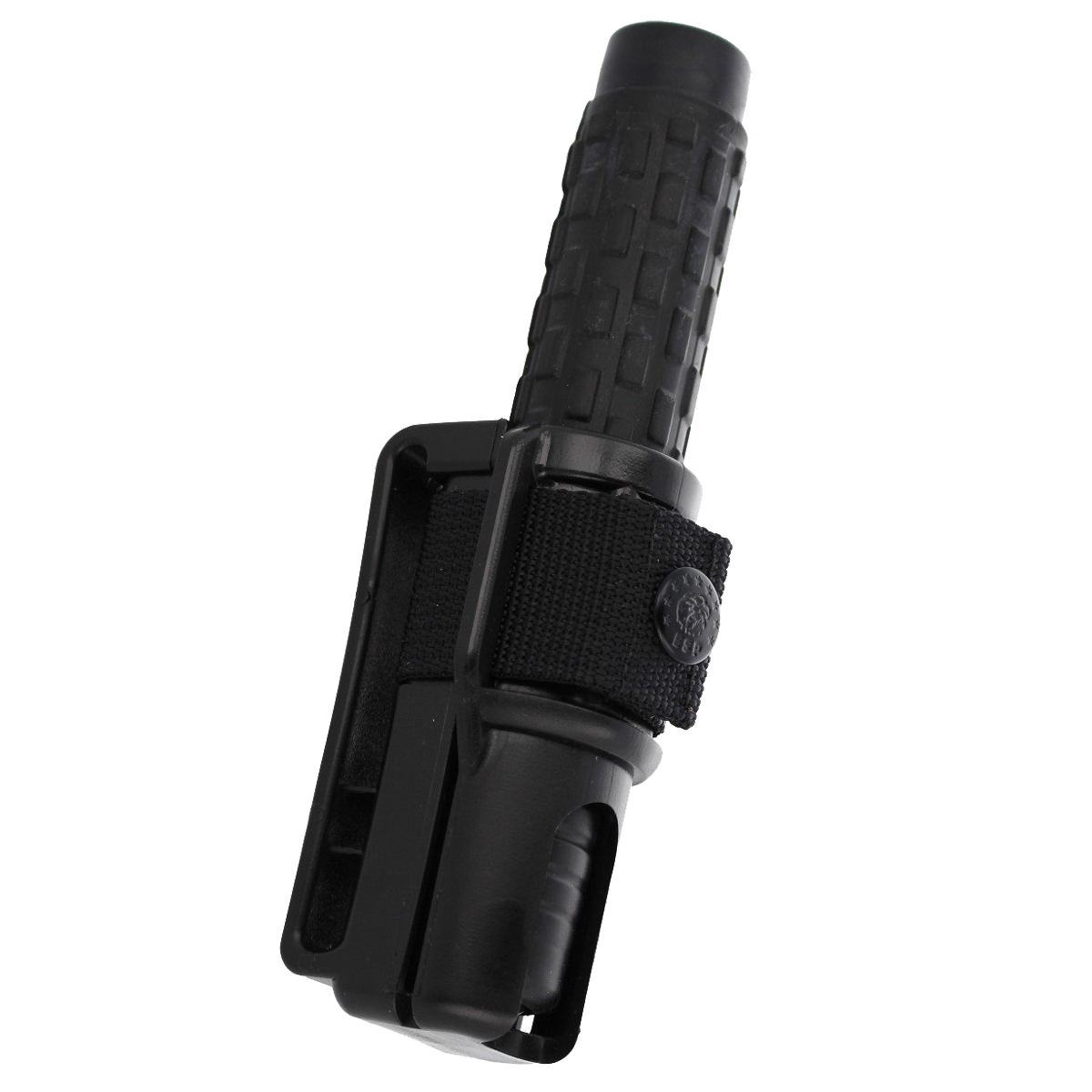 - Kabura - model (BH-02) - wykonana z wytrzymałego polimeru w kolorze czarnym. Etui posiada mocowanie do pasa umożliwiające przenoszenie pałki w pozycji pionowej, złożonej oraz rozłożonej.