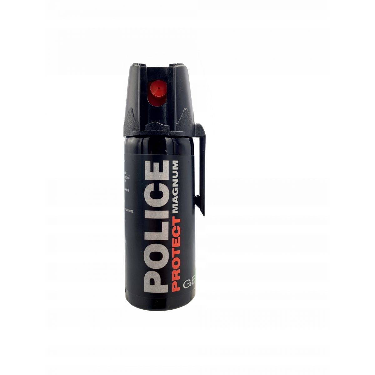 Gaz pieprzowy Police Protect Magnum Gel 50ml - jeden z najsilniejszych gaz dostępny dla cywili. Police Protect wersja Magnum posiada 11% stężenie olejku pieprzowego. Gaz obezwładniający w postaci strumienia, miotana substancja jest żelowa. Substancja drażniąca pozwala skutecznie obezwładnić napastnika. Skuteczny także na osoby pod wpływem alkoholu i środków odurzających. Pojemnik posiada klips do paska, który pozwala na wygodne przenoszenie i szybkie w użycie w razie potrzeby.