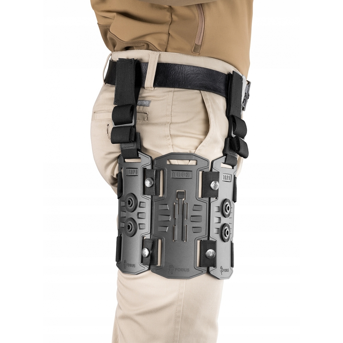 Panel udowy FOBUS TRP1 - najnowszy panel udowy izraelskiego producenta Fobus. Służy do zamocowania 1 kabury/ładownicy w systemie RT Roto. Każdy panel posiada możliwość zamontowania kabury lub ładownicy na wyższym lub niższym mocowaniu.