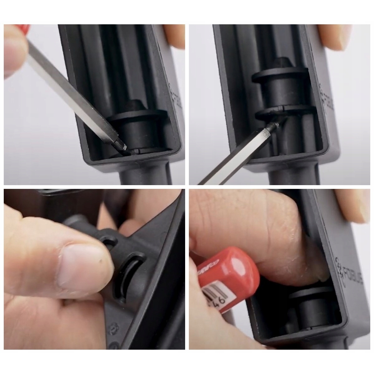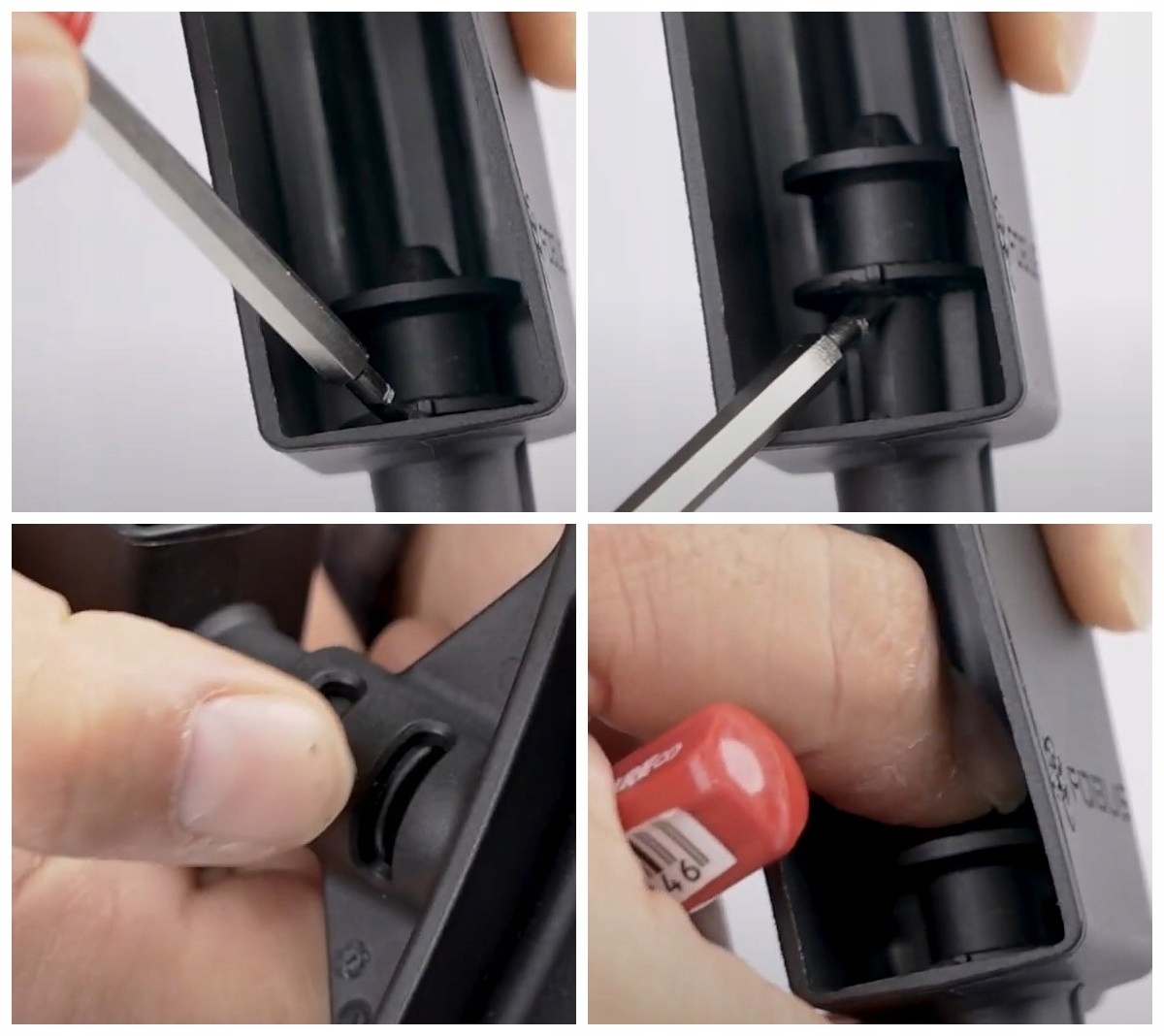 Aby je wymienić należy pociągnąć wkład do góry za pomocą śrubokręta płaskogłowego. Następnie wyciągnąć, wymienić na drugi wkład i docisnąć palcem.
