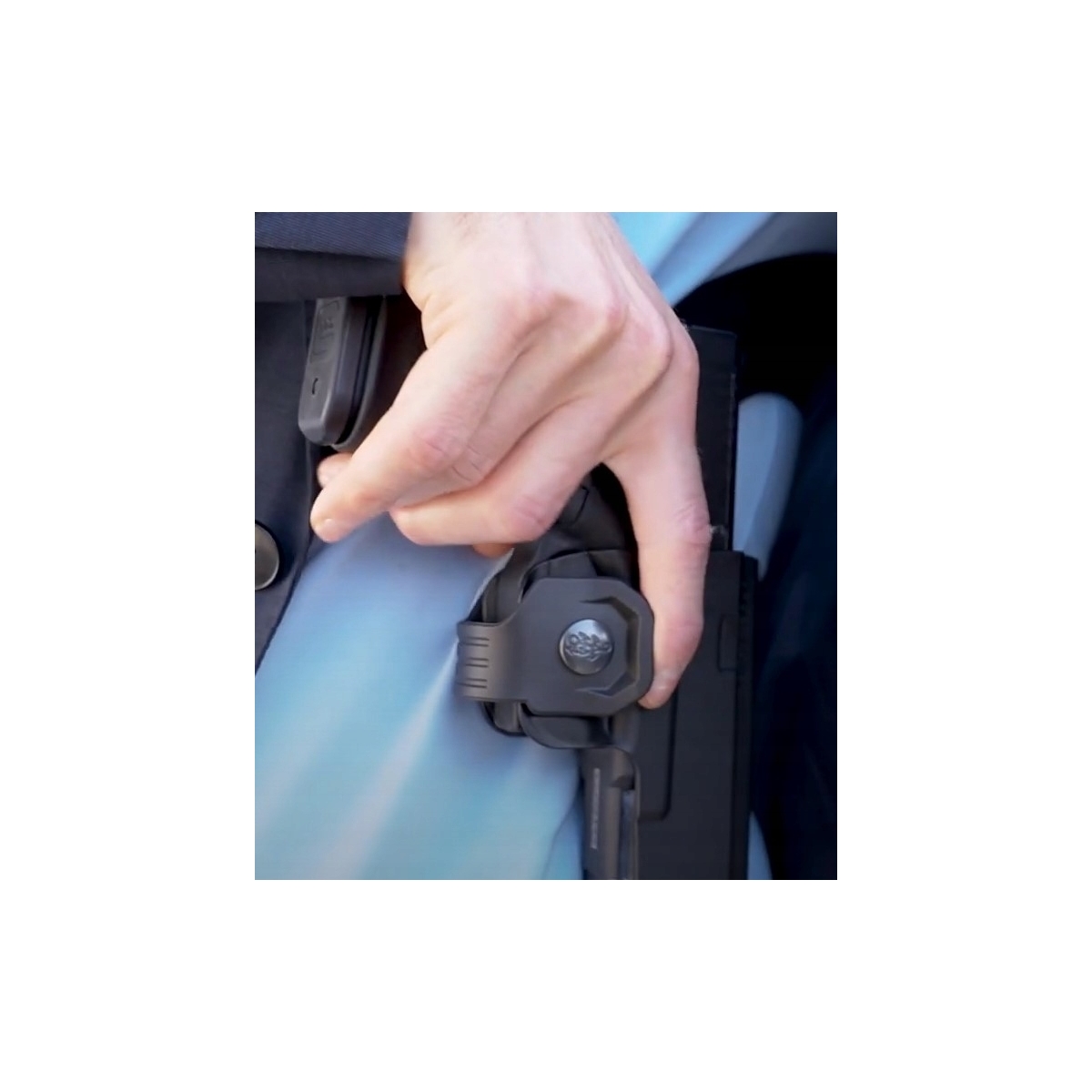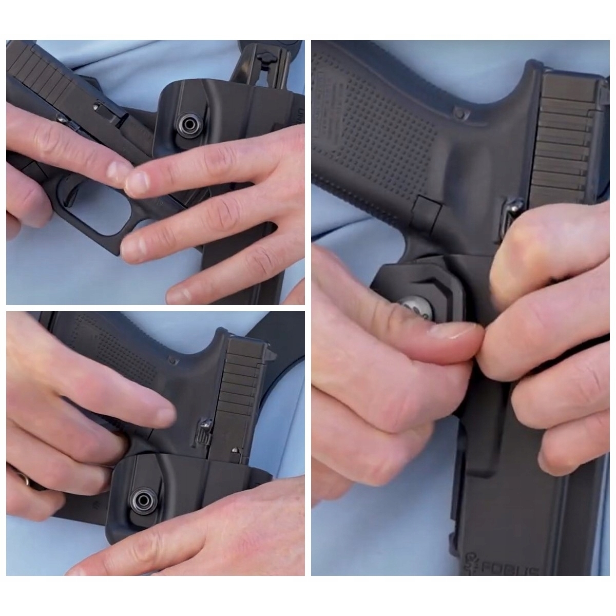 Aby wyciągnąć broń z kabury wystarczy jednym palcem odpiąć blokadę zatrzaskową.