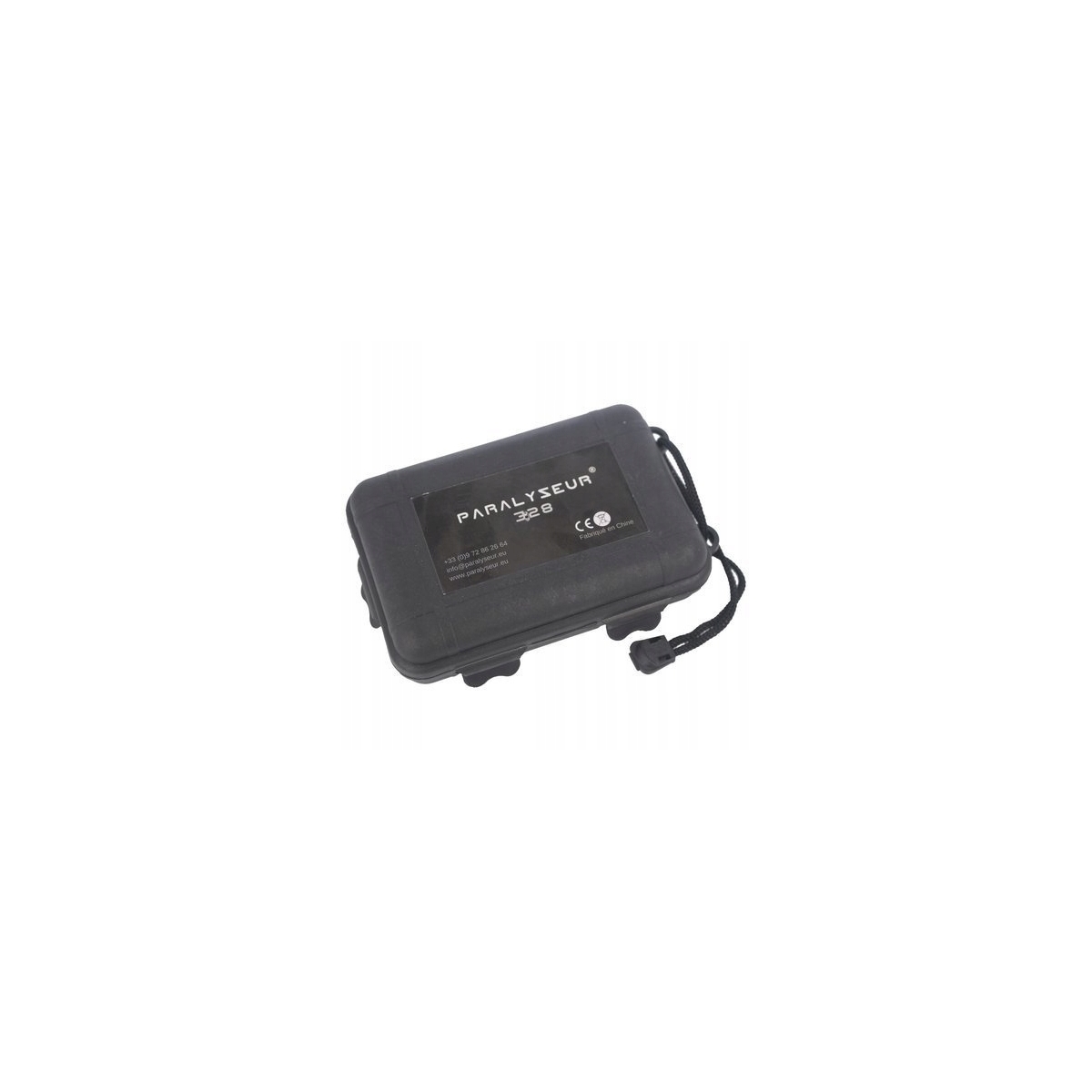 - Paralizator zapakowano w wodoszczelną i pyłoszczelną skrzynkę survivalową wykonaną z twardego polimeru w kolorze czarnym.