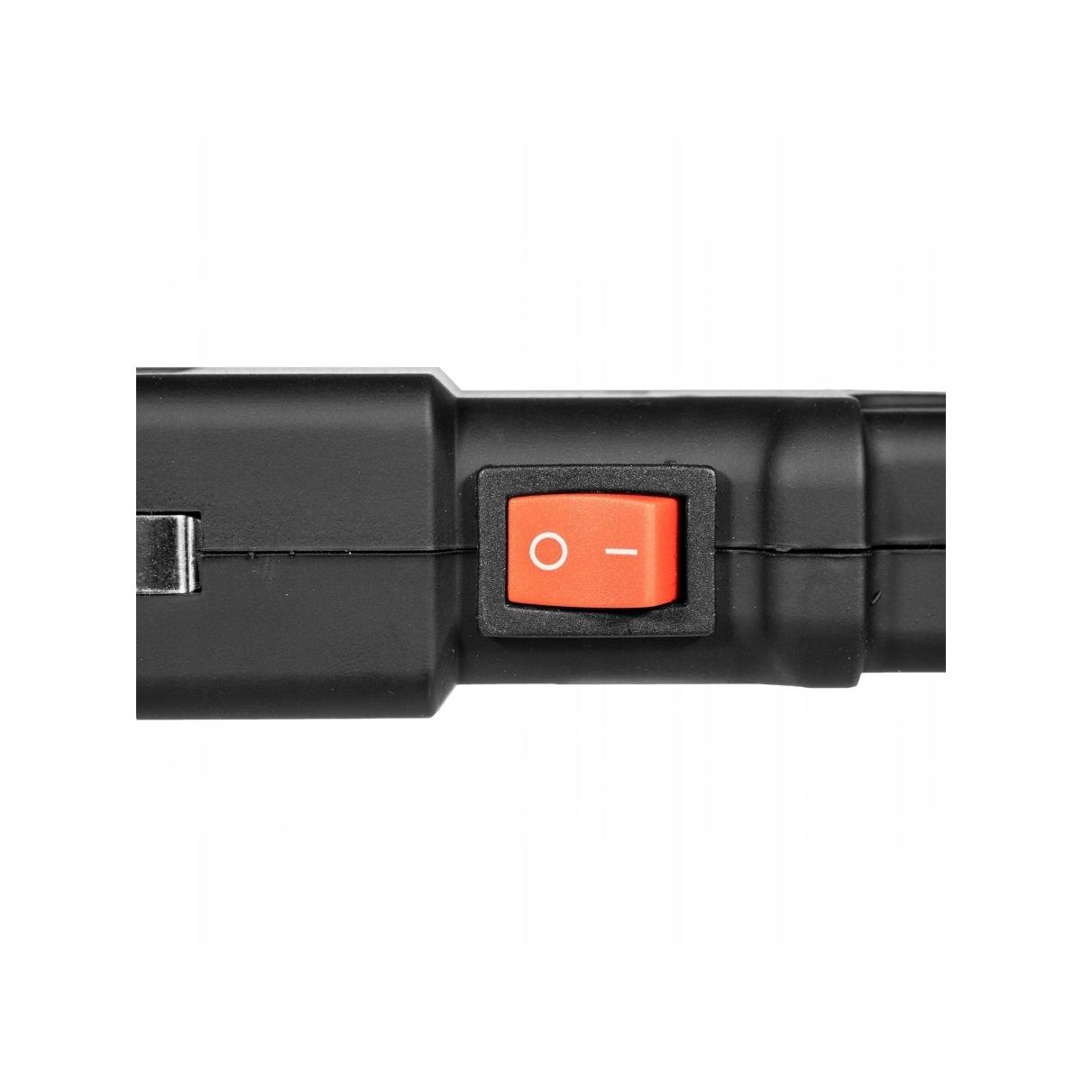 - Obsługiwany jest za pomocą 2 przycisków tj. dużego włącznika aktywującego paralizator oraz mniejszego suwaka, który włącza latarkę oraz aktywuje paralizator.