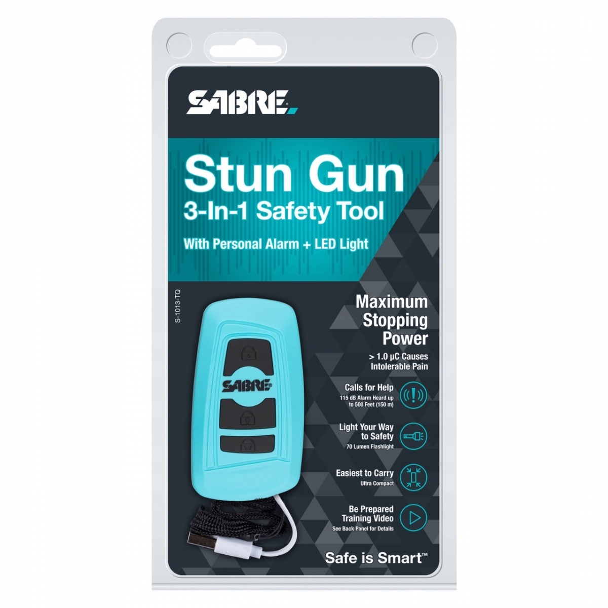 SABRE G-S-1013 to poręczny paralizator o mocy 1.15 uC (1 150 000 V) z latarką i alarmem osobistym. Te niewielkich rozmiarów urządzenie wyglądem przypomina pilot do auta, co może zmylić napastnika i dać nam więcej czasu na obronę.