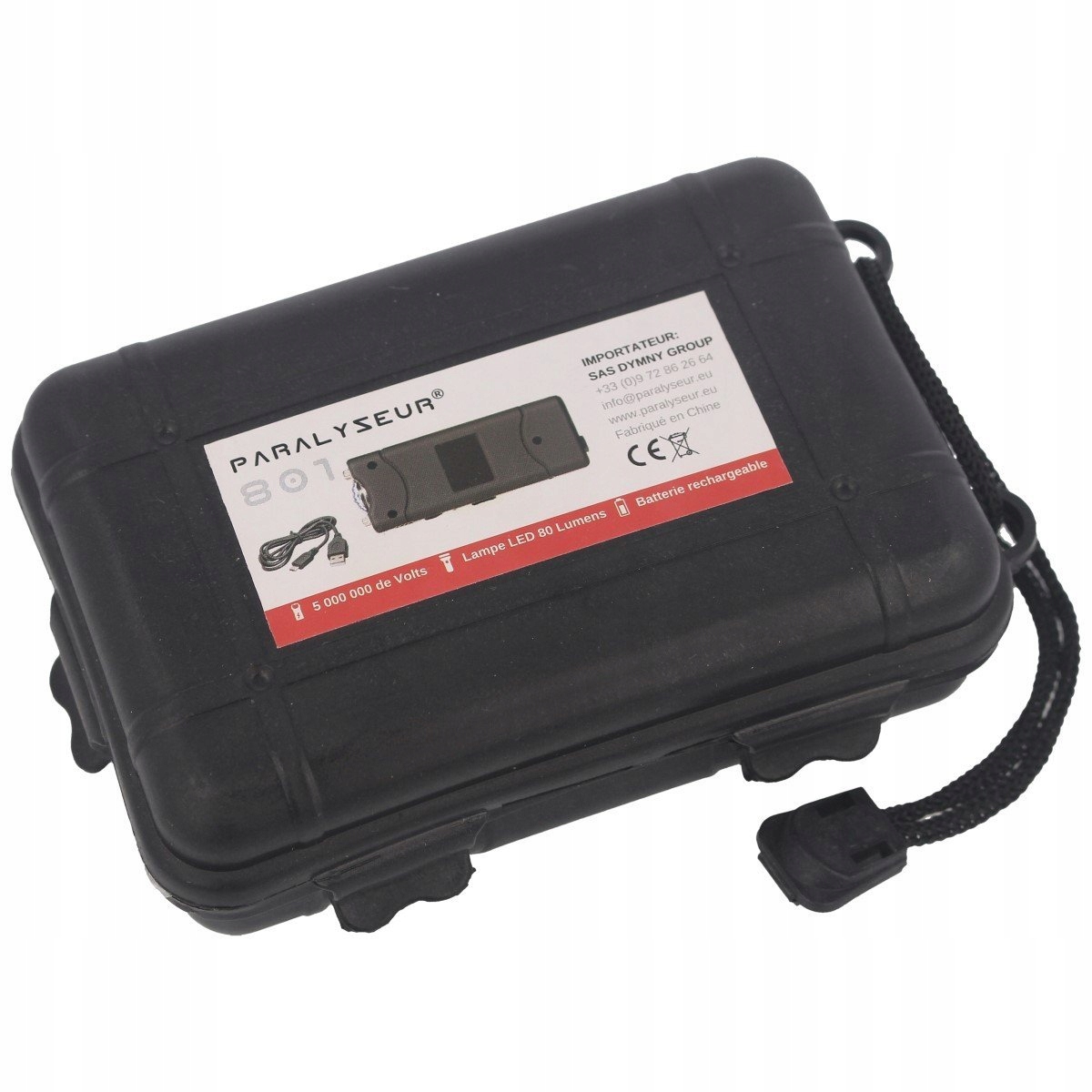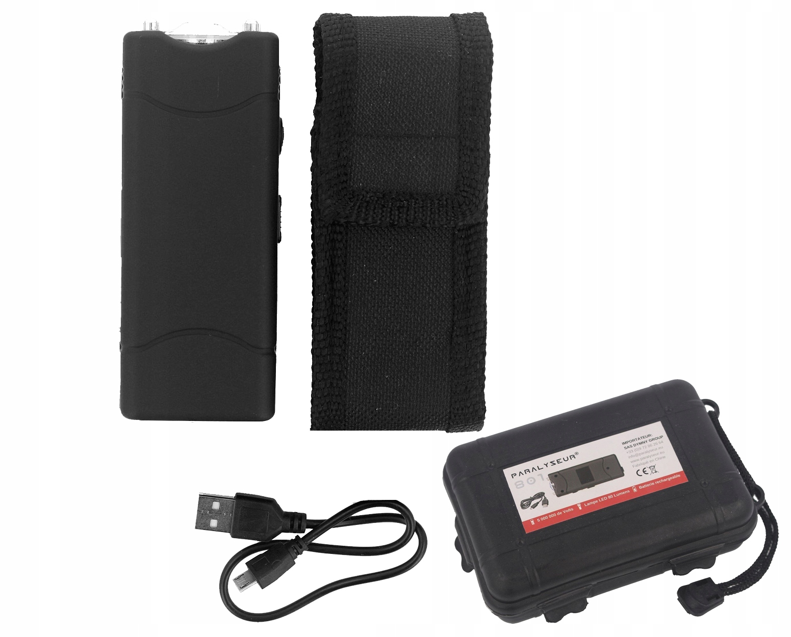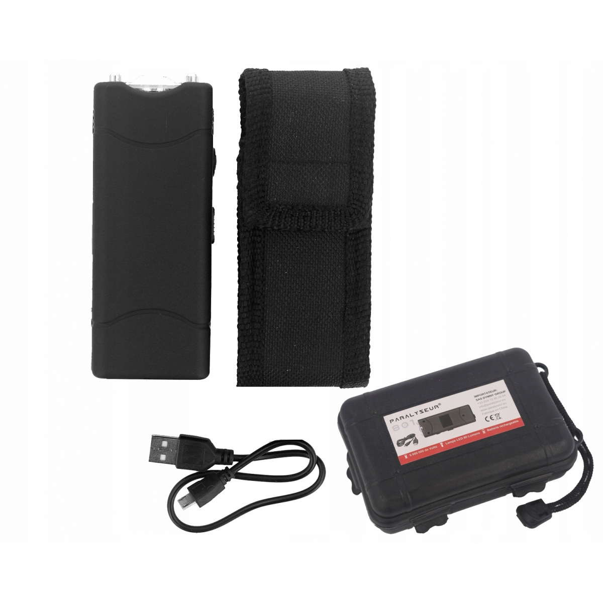Paralizator Paralyseur 801 - ładowalny paralizator do obrony osobistej wraz z funkcją latarki. Charakteryzuje się mocnym impulsem, a w razie zagrożenia spełnia skuteczną funkcję obronną rażąc napastnika z mocą 5 000 000 Volt. Paralizator jest prosty w obsłudze, a jego przenoszenie nie sprawia problemów. W komplecie znajduje się także kabura z możliwością przypięcia do pasa. Wyposażony w funkcję ładowania za pomocą wbudowanego portu USB.