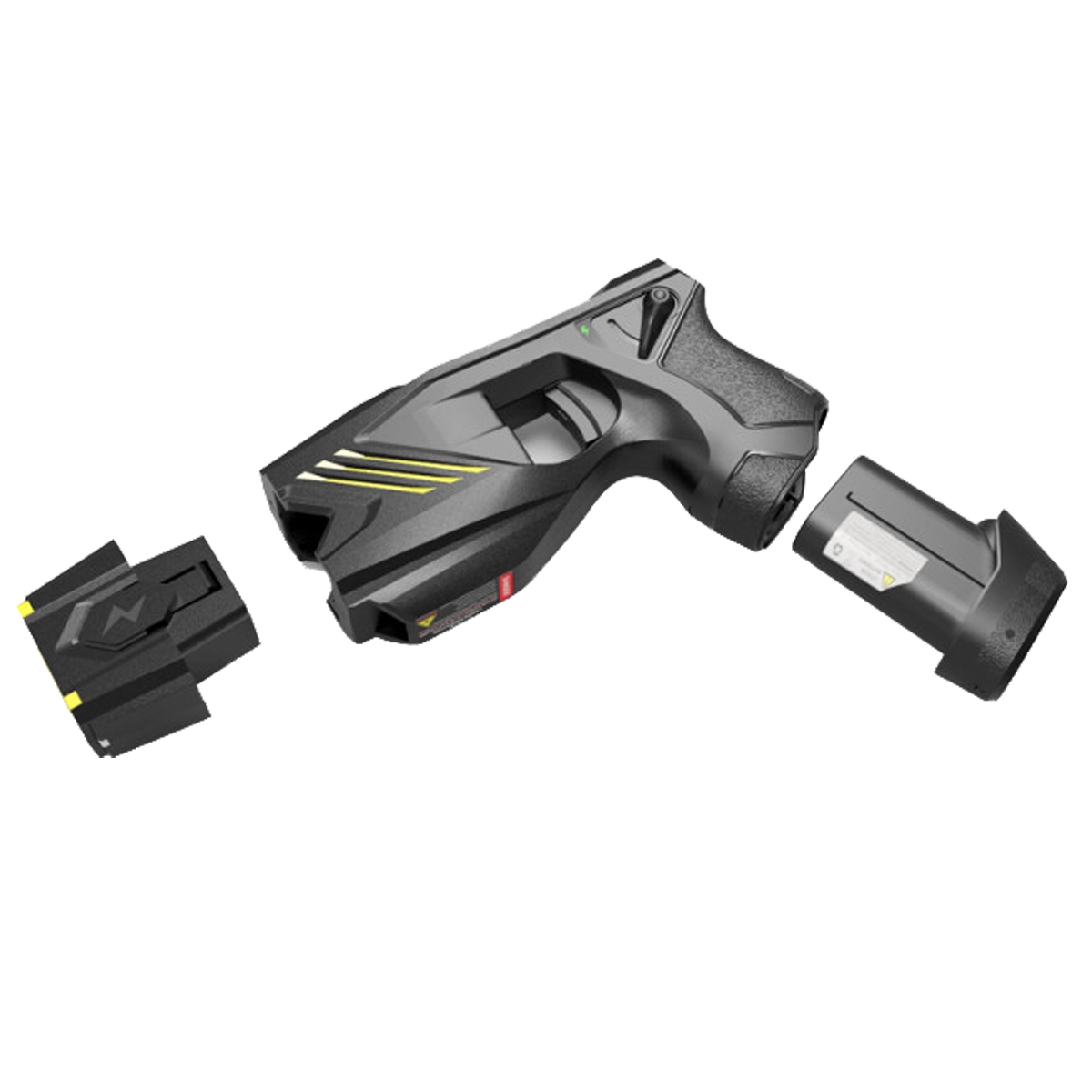 Wykorzystywane w paralizatorze kartridże zawierają dwie elektrody zakończone haczykami, które po wystrzeleniu na odległość do 6 metrów, wbijają się w ubranie osoby atakującej i rażą ją napięciem 55 000V o natężeniu prądu poniżej 2mA.