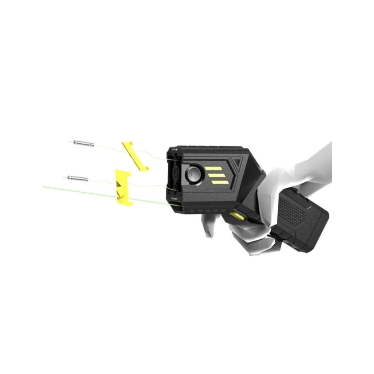Podwójny celownik laserowy: Zapewnia wysoką celność, pokazując punkt uderzenia obu elektrod, co minimalizuje ryzyko chybienia.
