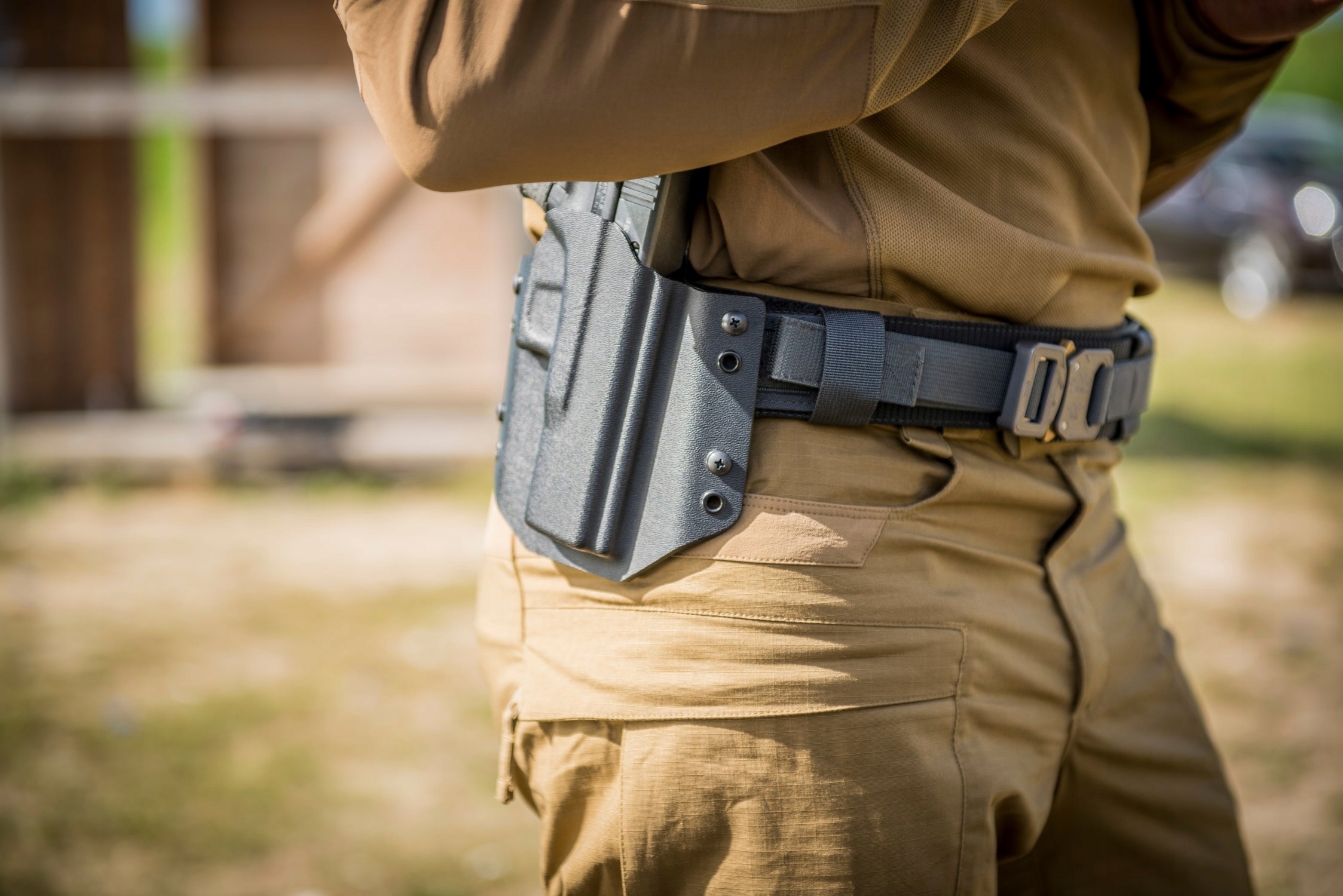 Klamra zamyka się na zatrzask, dzięki czemu pas nie rozepnie się podczas treningu bądź zawodów strzeleckich. Pas został usztywniony dla większej stabilności zamocowanych kabur lub/i ładownic. Jest kompatybilny z klamrami Tek-Lok®, jak i innymi systemami mocującymi oraz posiada zgodność PALS/MOLLE