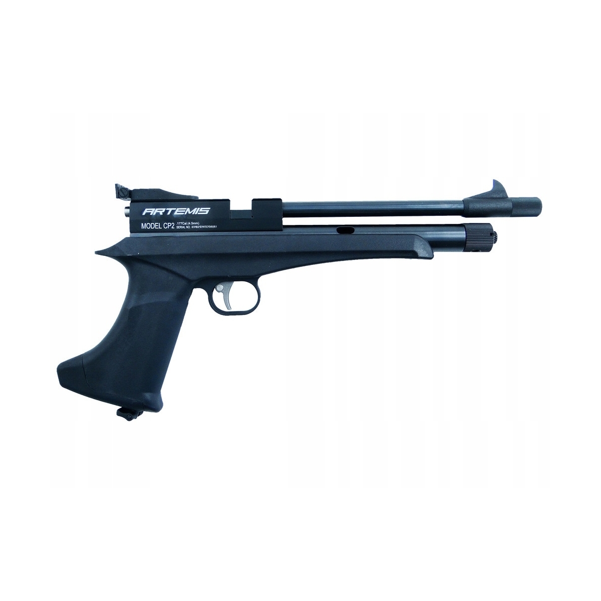 - Artemis CP2 został wyposażony w szynę 11 mm, dzięki czemu jesteśmy wstanie zamontować kolimator lub w opcji karabinka lunetę.