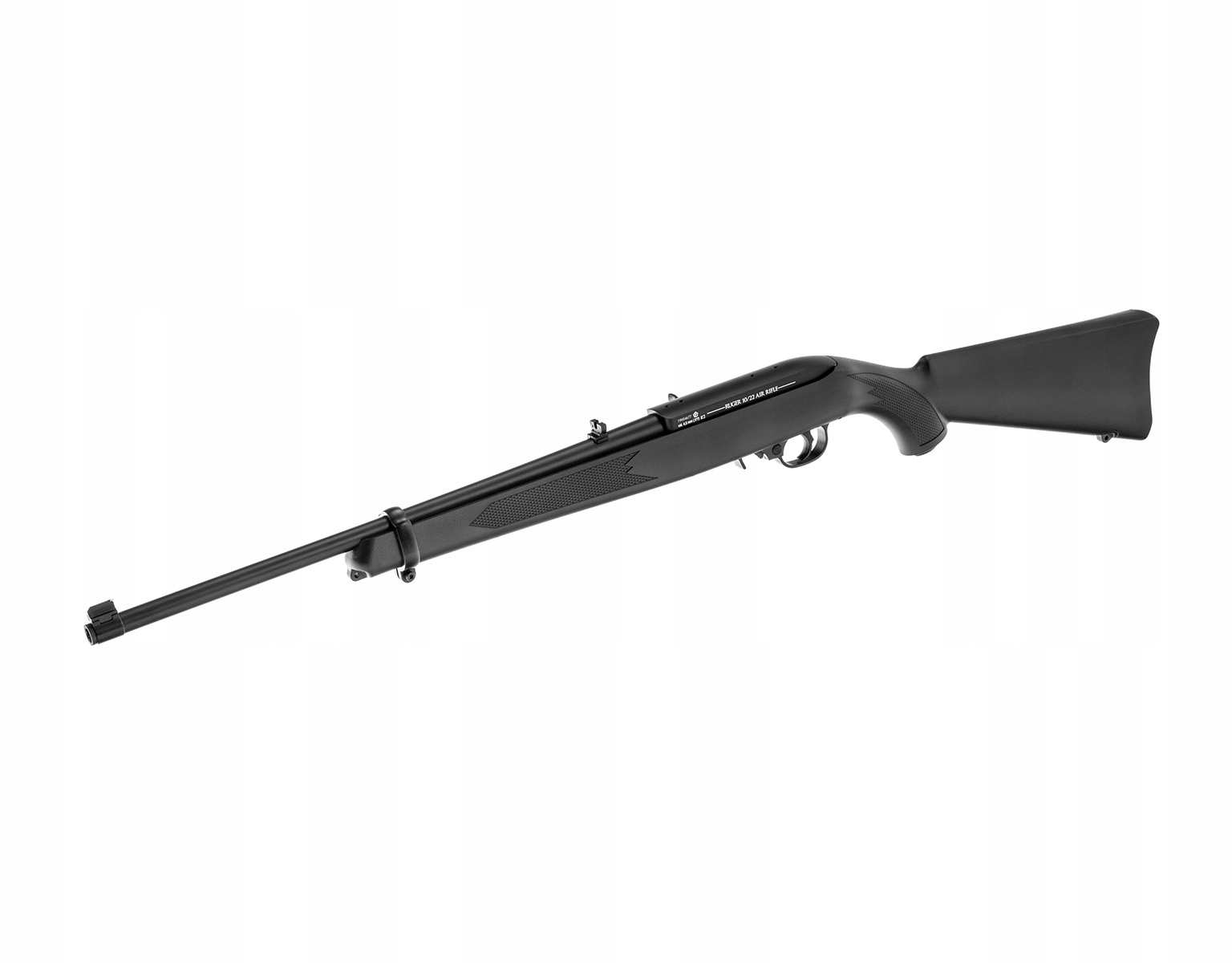 Wiatrówka Ruger 10/22 4,5 mm firmy UMAREX - to model na naboje CO2, wzorowany na półautomatycznym karabinku Ruger 10/22 zasilanego amunicją, który wyprodukowano w blisko 8 milionach egzemplarzy. Wiatrówka wykonana została z metalu i tworzywa sztucznego. Łoże wraz z magazynkiem wykonano z tworzywa, natomiast lufę, korpus i elementy mechaniczne z metalu.