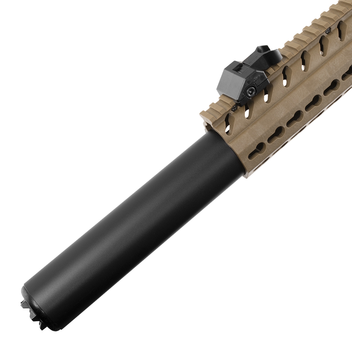 - Chwyt przedni typu KeyMod do przyłączenia dedykowanych segmentów np. szyn RIS w dowolnej pozycji oraz konfiguracji.