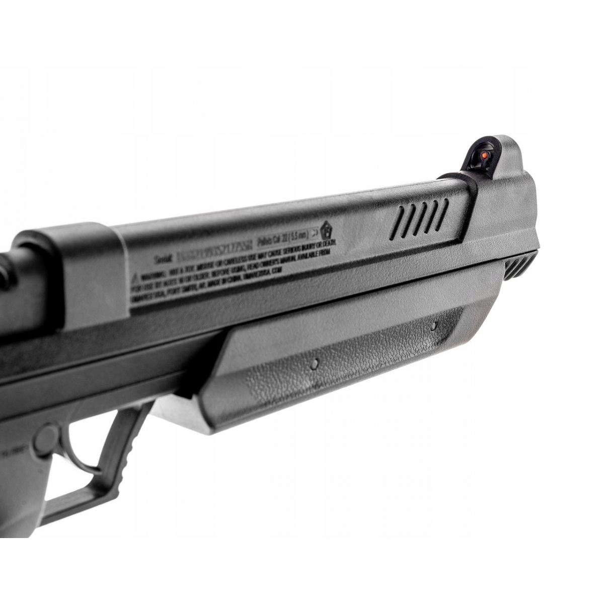 - Pistolet wyposażono w światłowodową muszkę i regulowaną szczerbinkę.