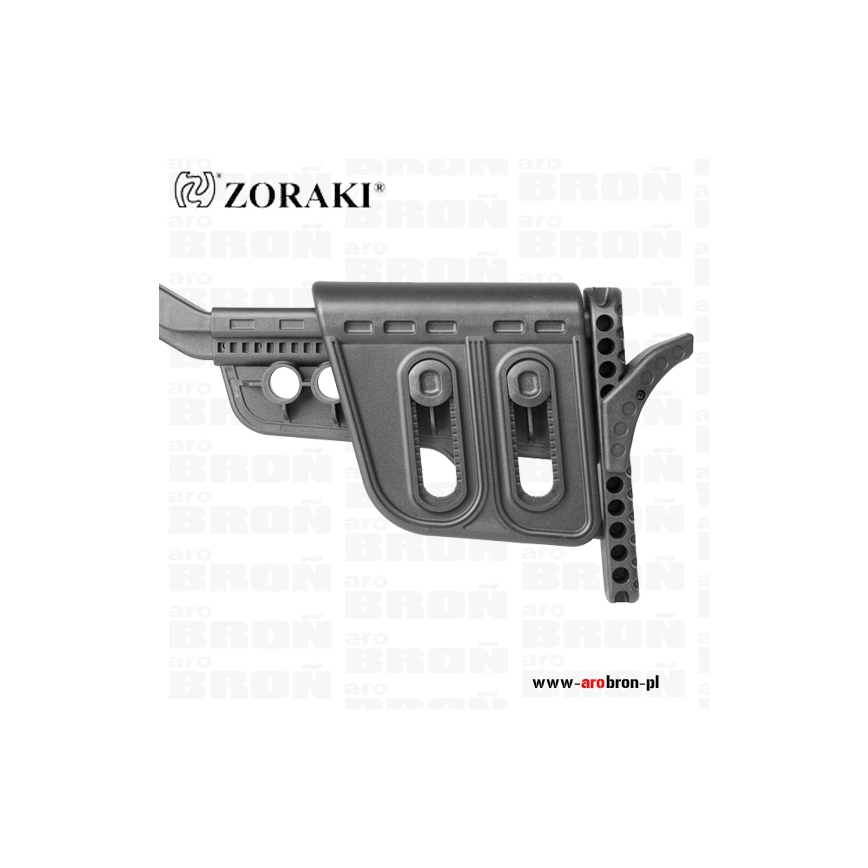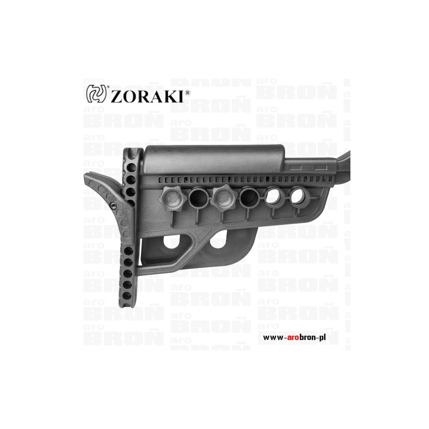 Kolba dostawna Zoraki - kolba modułowa przeznaczona do pistoletu Zoraki HP-01 i HP-01 Ultra, dzięki której w łatwy sposób pistolet można przekształcić w pełnowymiarowy karabinek. Kolba posiada regulację długości, bakę policzkową o regulowanej wysokości oraz stopkę kolby z punktem podparcia, aby można było do sbiebie dopasować, a użytkowanie było maksymalnie komfortowe.