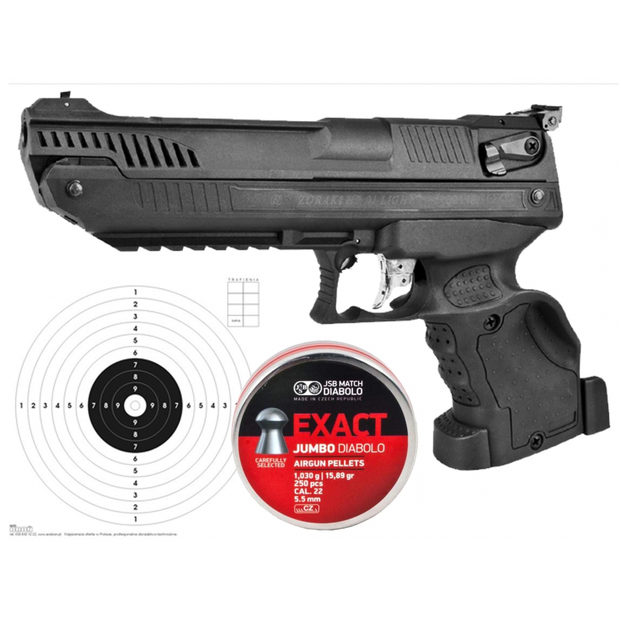 W komplecie: wiatrówka, walizka, wycior, olejek, klucz do regulacji. GRATIS: opakowanie śrutu JSB Exact 5,5mm, komplet 50 szt tarcz.
