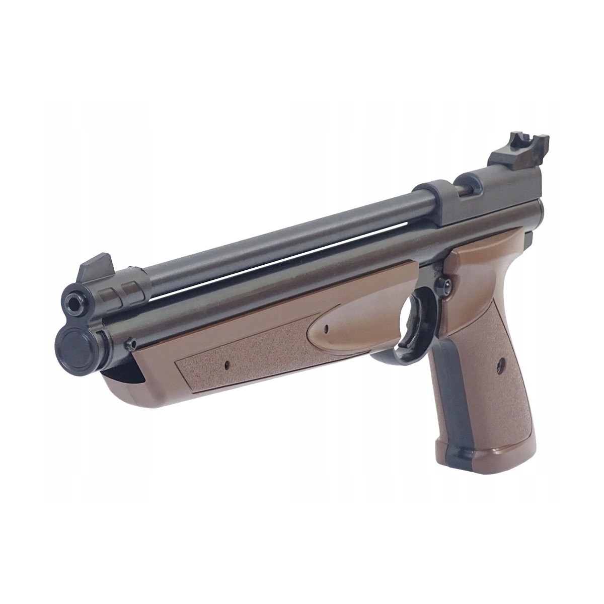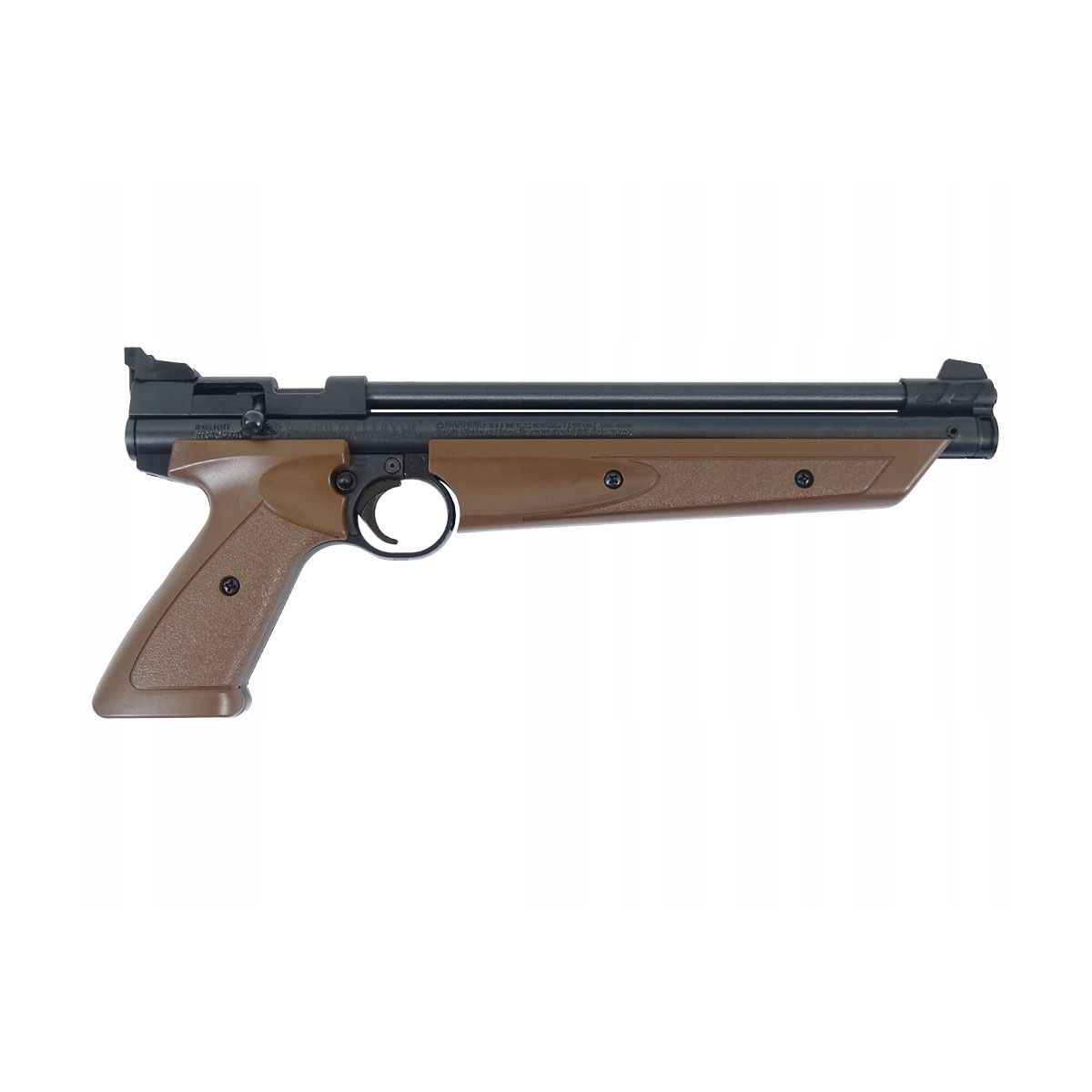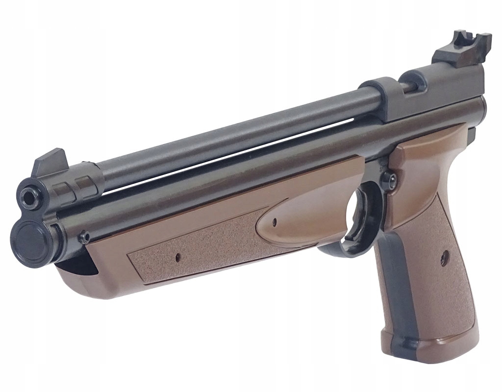 - Jednostrzałowy pistolet amerykańskiej firmy Crosman, ze stalową lufa gwintowaną kaliber 4,5 mm.