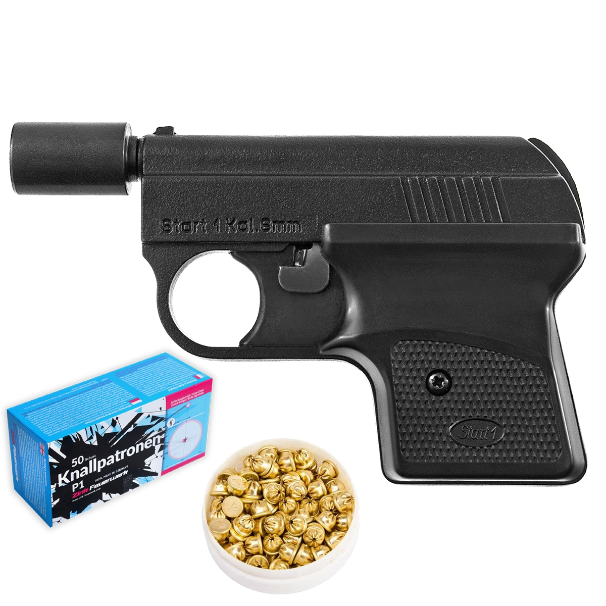Pistolet hukowy alarmowy 6mm short START 1 + amunicja hukowa short 100 szt. + race hukowe 50 szt.