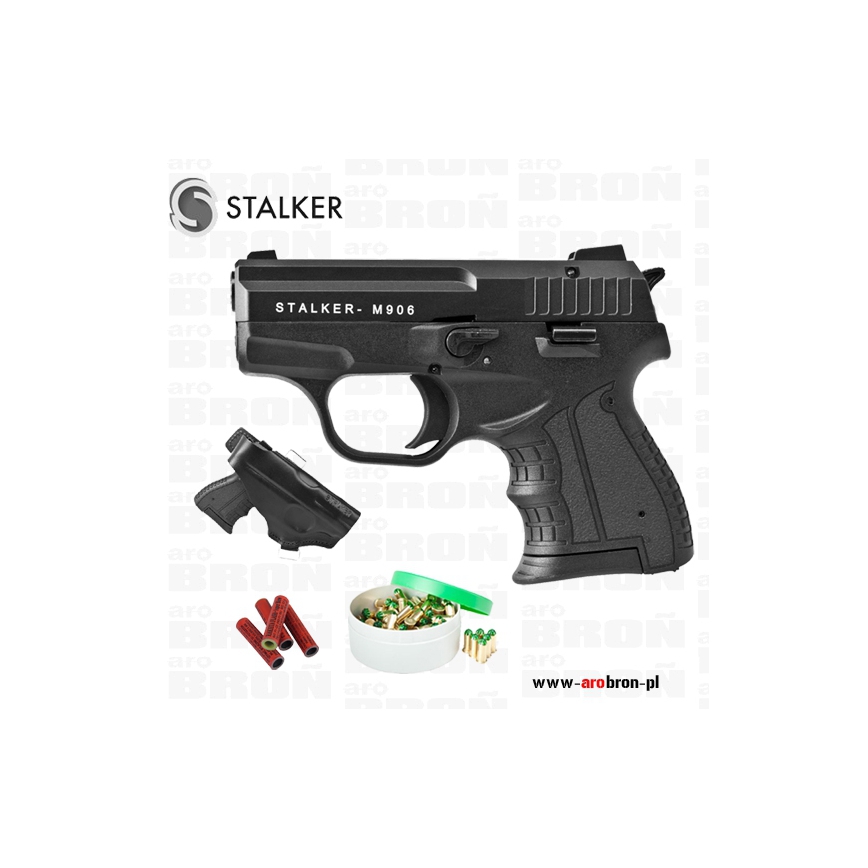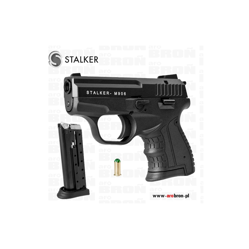 Pistolet alarmowy hukowy STALKER M906 BLACK - na amunicję hukową 5,6/16mm Green, wyprodukowany przez turecką firmę ZORAKI. Działanie tego pistoletu w pełni oddaje realizm strzału - jak w broni palnej (odrzut zamka, wyrzut łuski, huk, podrzut broni przy strzale i ogień z lufy). Broń ta dostępna jest bez zezwolenia dla osób pełnoletnich.