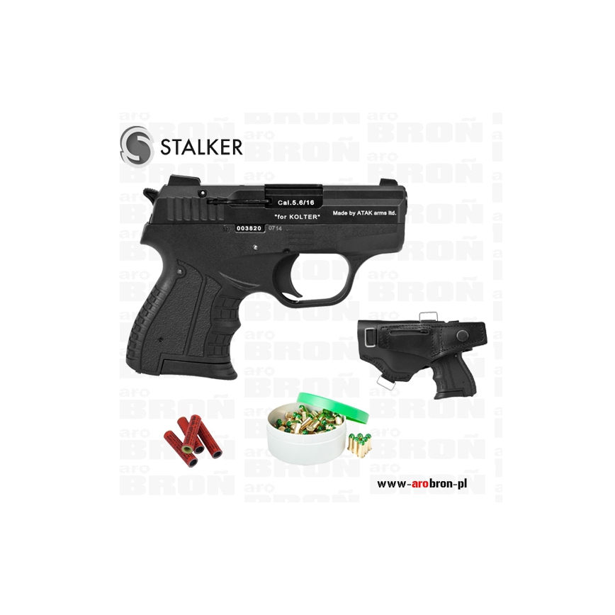 Kaliber zarówno lufy jak i kartridża nie przekracza 6 mm, co kwalifikuje ten pistolet w Polsce jako broń alarmową bez zezwolenia. - Pistolet hukowy STALKER produkowany jest przez znaną i cenioną na całym świecie, turecką firmę Atak Arms. W Polsce firma ta znana była dotychczas z serii rewolwerów hukowych i pistoletów pneumatycznych produkowanych pod marką ZORAKI. Produkty te ze względu na bardzo dobre wykonanie i bezawaryjność od lat cieszą się ogromną popularnością na naszym rynku.