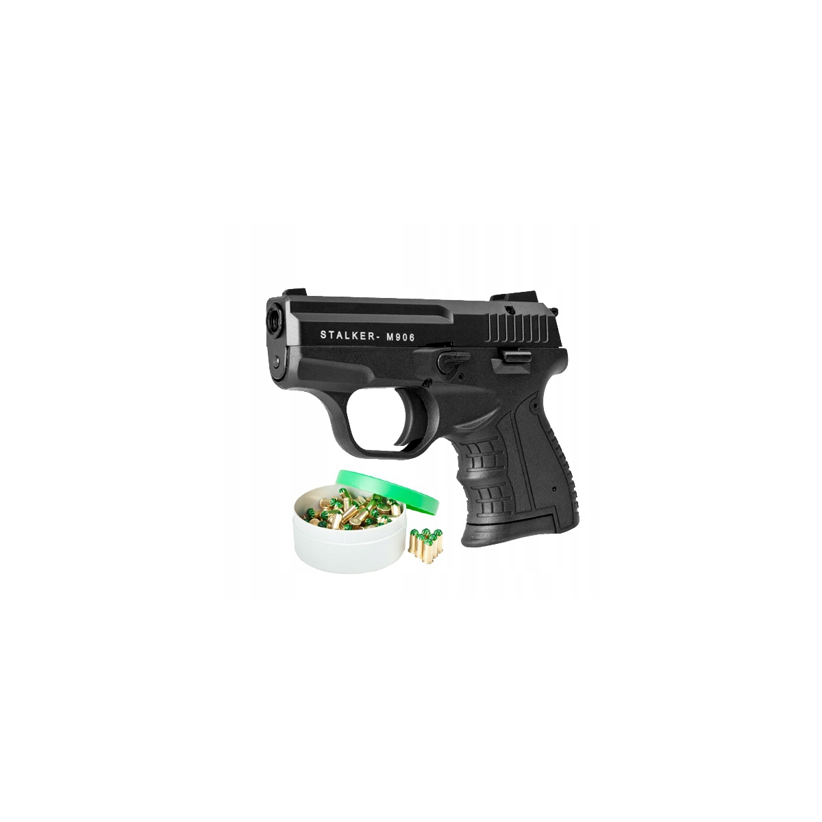 Pistolet hukowy STALKER M906 - na amunicję hukową 5,6/16mm Green, wyprodukowany przez turecką firmę ZORAKI. Działanie tego pistoletu w pełni oddaje realizm strzału - jak w broni palnej (odrzut zamka, wyrzut łuski, huk, podrzut broni przy strzale i ogień z lufy). Broń ta dostępna jest bez zezwolenia dla osób pełnoletnich.