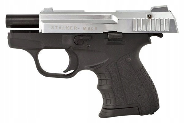 - Nowy pistolet alarmowy STALKER M906 stanowi skuteczną i niewymagającą zezwolenia alternatywę dla broni palnej.Kaliber zarówno lufy jak i kartridża nie przekracza 6 mm, co kwalifikuje ten pistolet w Polsce jako broń alarmową bez zezwolenia.