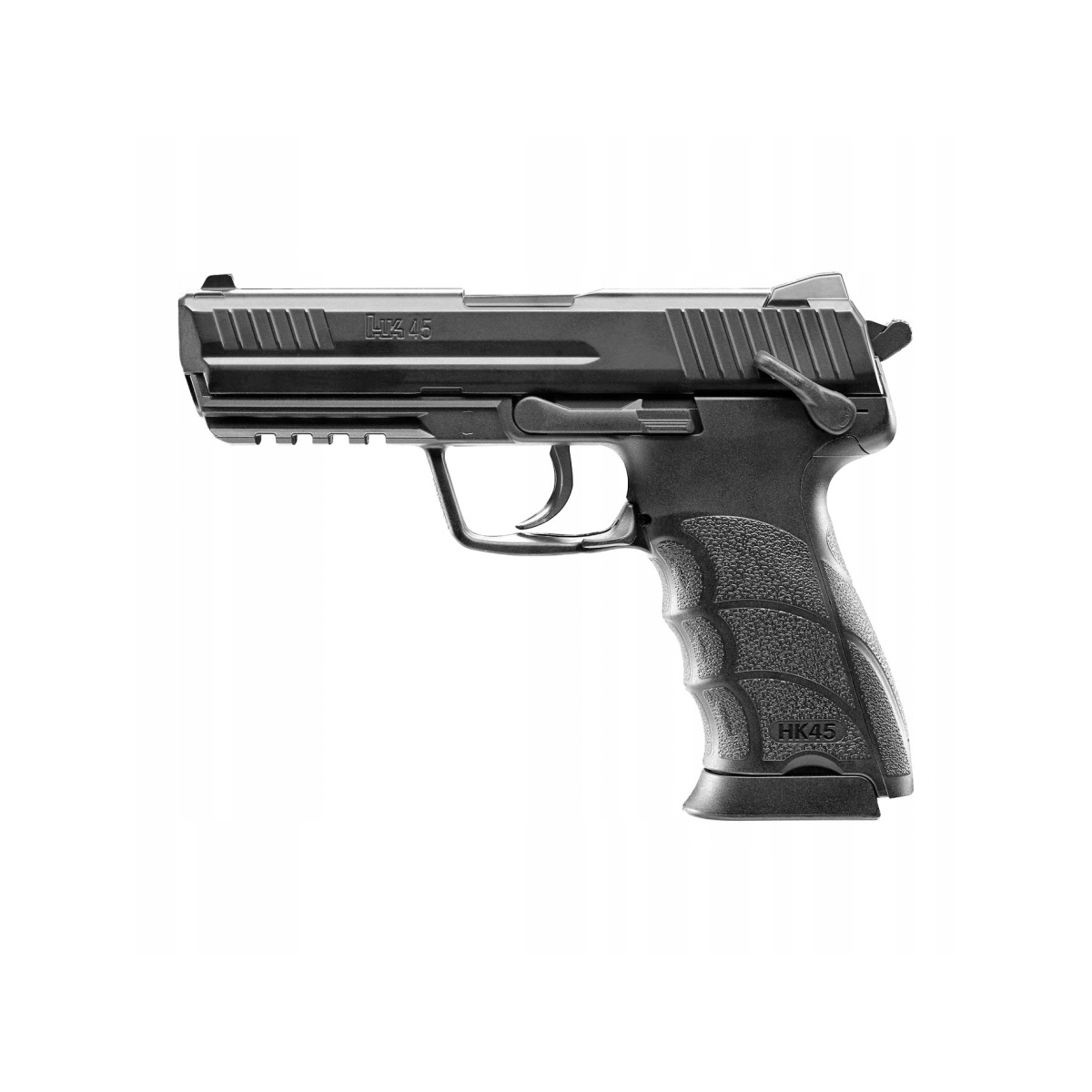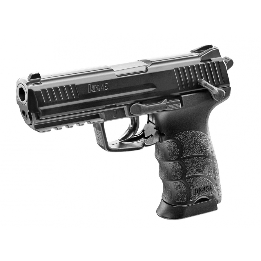 Pistolet ASG H&K Heckler&Koch HK45 6 mm - to wysokiej jakości replika CO2, wyposażona w metalowy zamek, system hop-up odpowiedzialny za wysoką celność oraz dużą prędkość początkową aż 460 fps.