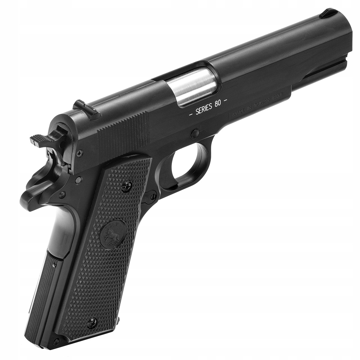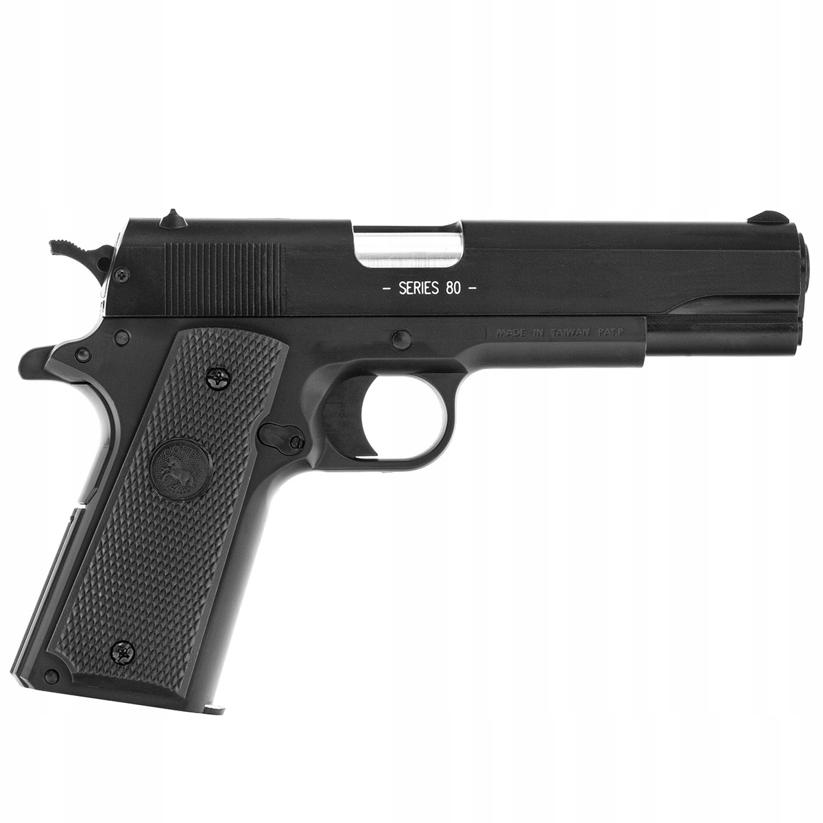 Pistolet ASG Cybergun Colt 1911 Metal Slide 180116 - wykonana częściowo z metalu ciężka replika Colta 1911 w wersji A1 z oryginalnymi oznaczeniami jubileuszowej serii 80 - na 100 lecie pistoletu.