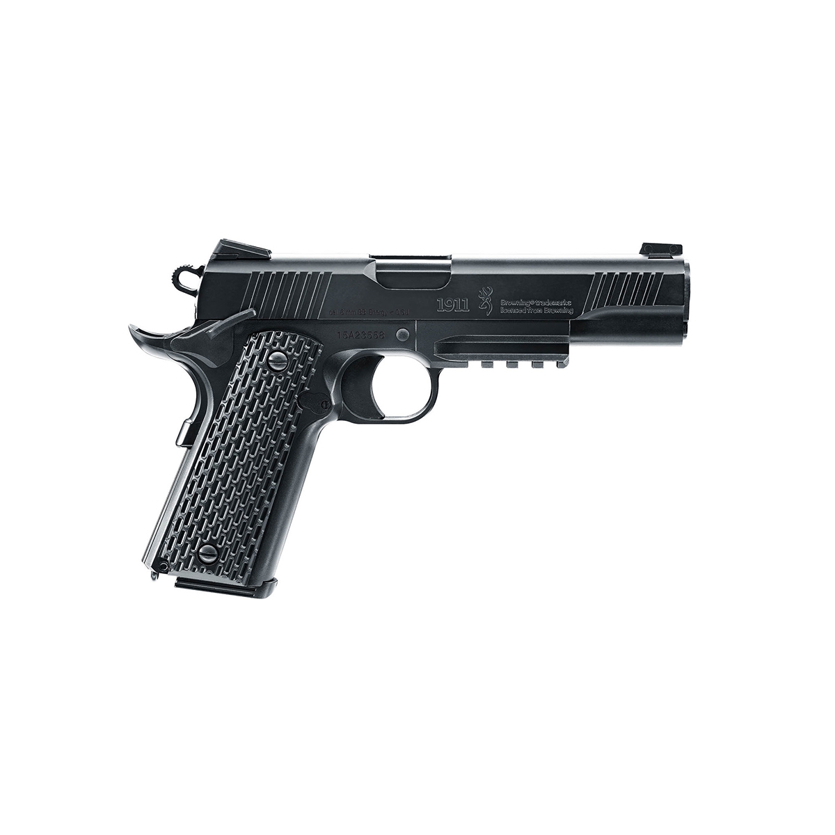 - Pistolet ASG replika Browning 1911 z metalowym zamkiem i lufą.