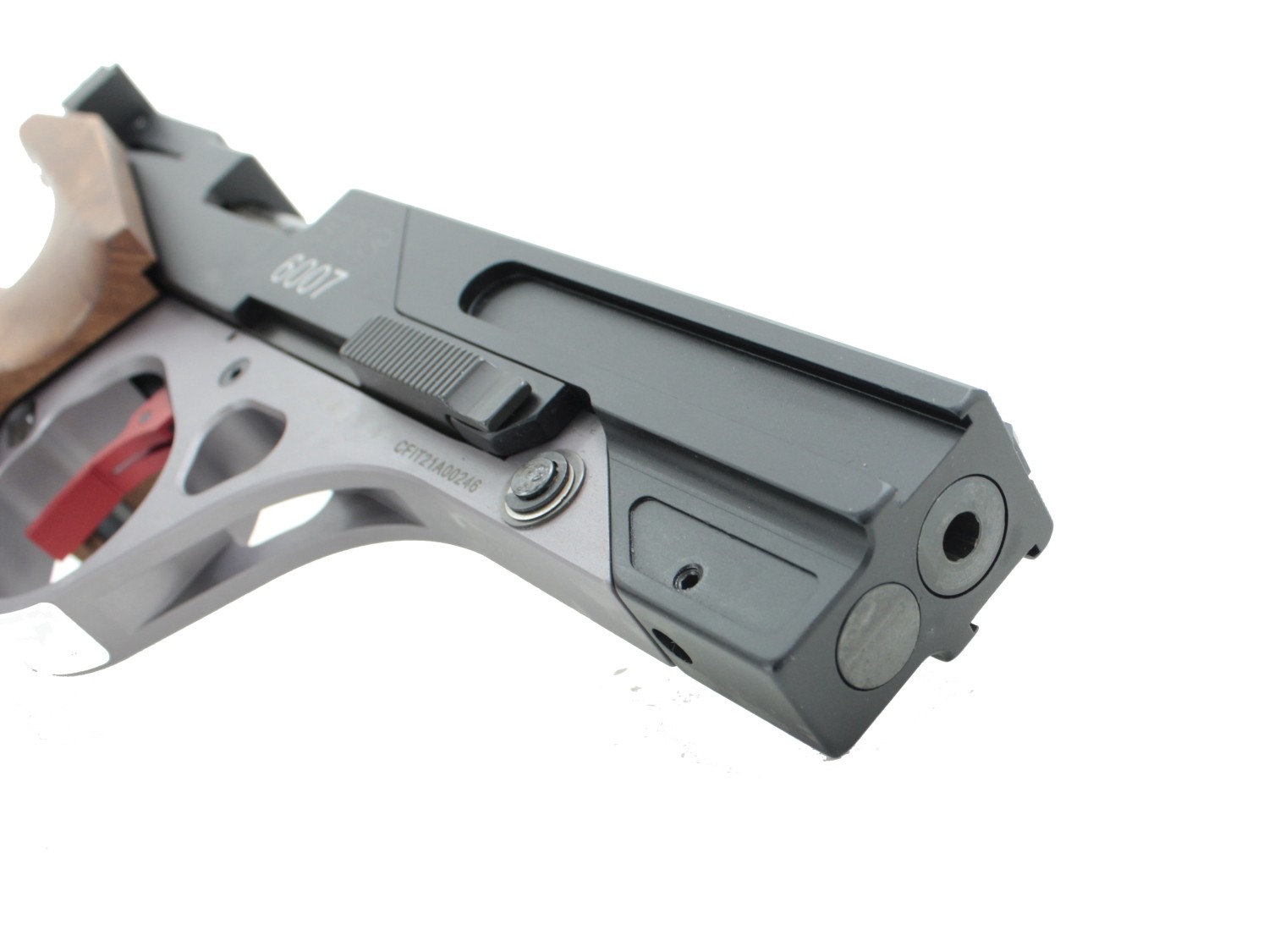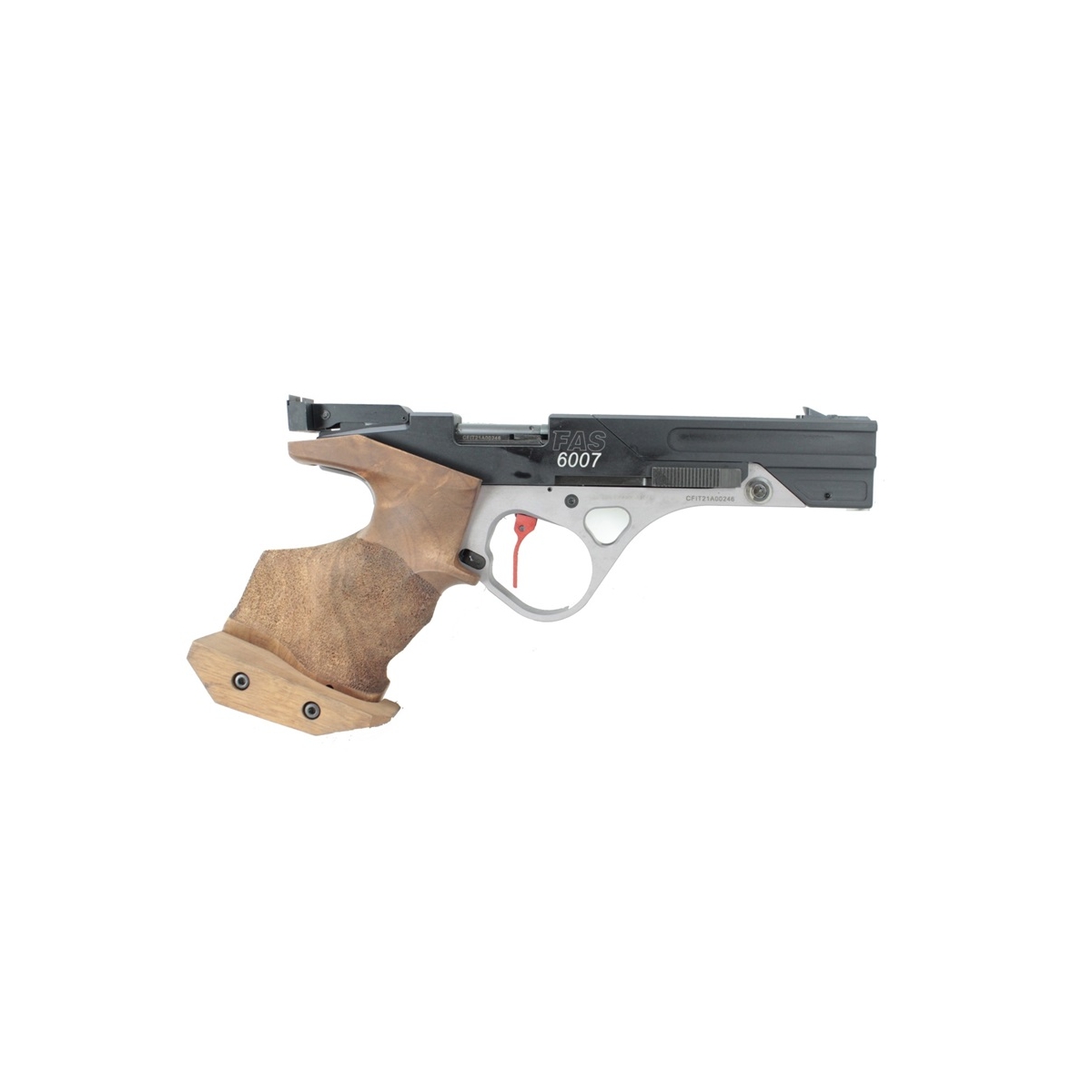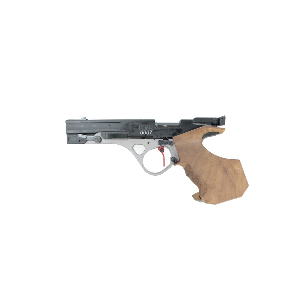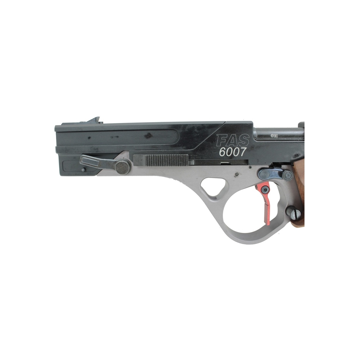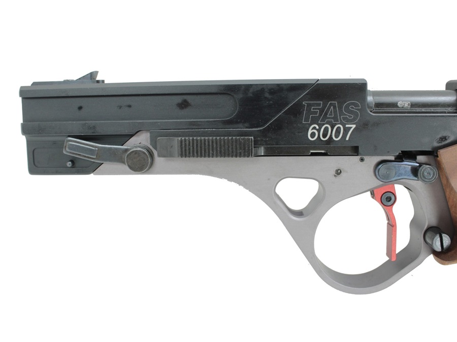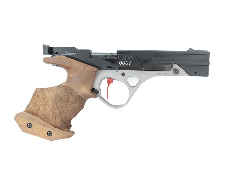 Konstrukcja FAS 6007 wyróżnia się ergonomicznym uchwytem, który zapewnia stabilne i wygodne trzymanie broni, co jest kluczowe podczas długich sesji treningowych lub zawodów. Rękojeść jest wykonana z wysokiej jakości drewna, a jej profil można dostosować do indywidualnych preferencji strzelca, co poprawia komfort użytkowania i zwiększa kontrolę nad pistoletem.