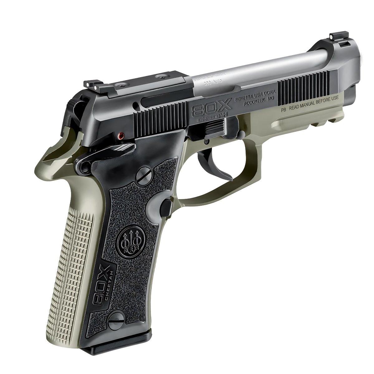 Beretta 80X Cheetah Green – nowoczesny pistolet samopowtarzalny kalibru .380 ACP (9x17 mm), będący odświeżoną wersją klasycznego modelu serii 80 od renomowanego włoskiego producenta, firmy Beretta. Model ten łączy w sobie sprawdzoną konstrukcję z nowoczesnymi rozwiązaniami, oferując niezawodność, ergonomię i styl w kompaktowym rozmiarze.