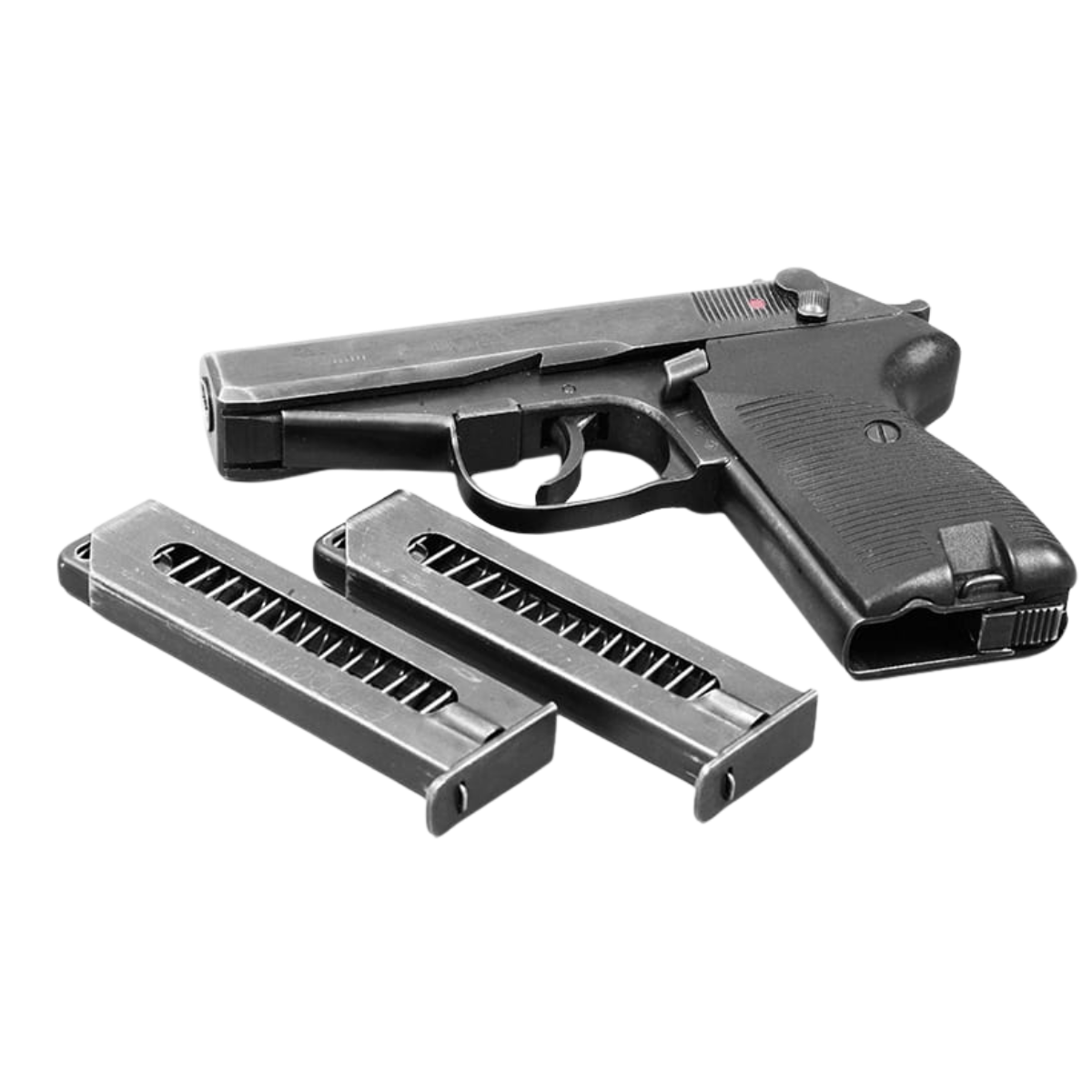 2 Magazynki: W zestawie otrzymujesz łącznie dwa magazynki (jeden w broni, jeden zapasowy), co pozwala na płynny trening na strzelnicy.
