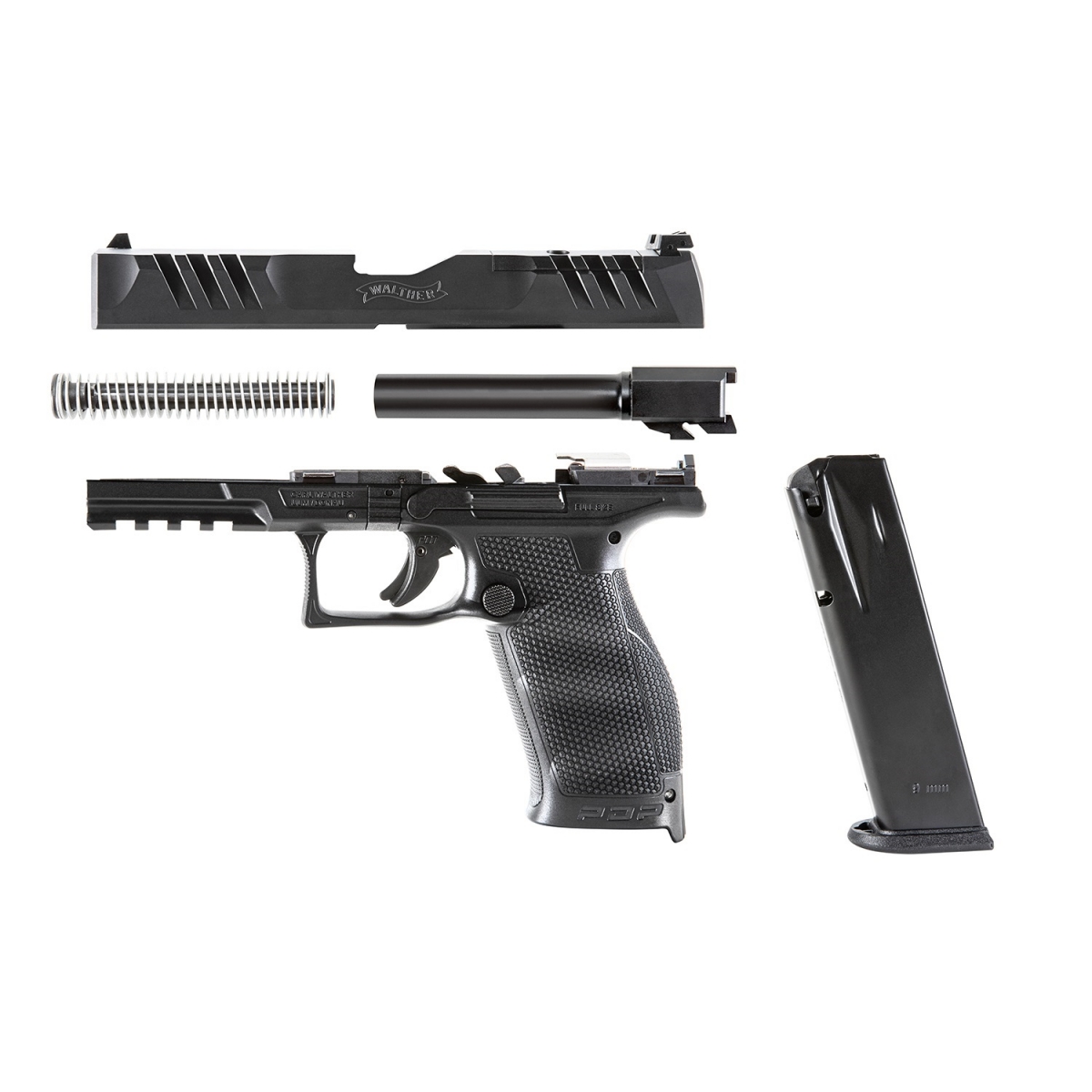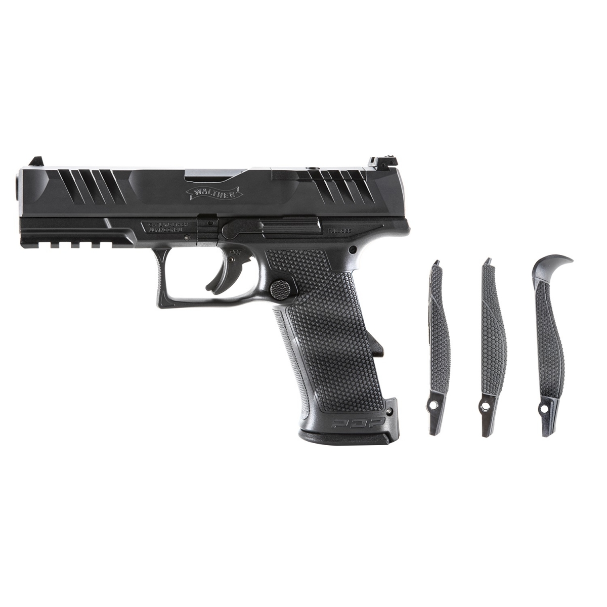Pistolet Walther PDP 4,5” to standardowej wielkości pistolet tzw. full size. Rękojeść i tylna gumowa nakładka została pokryta mocną teksturą, dzięki czemu chwyt jest pewny w każdych, nawet najcięższych warunkach. Tylna, gumowa wkładka jest wymienna na inne rozmiary, co pozwoli na dopasowanie chwytu broni do dłoni strzelca.