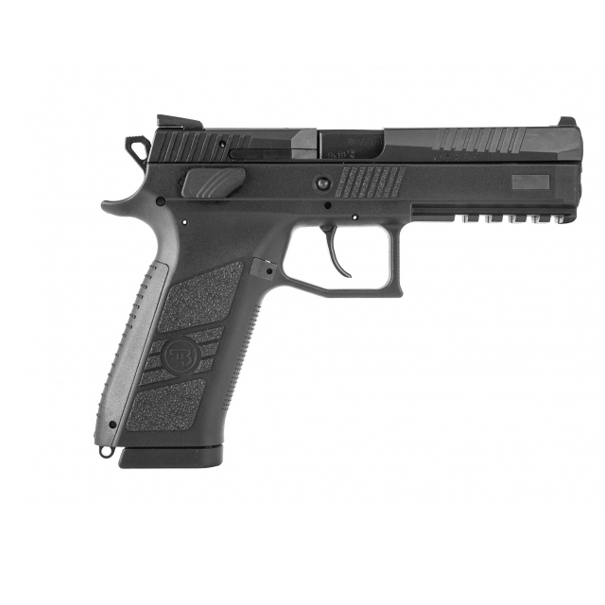 Pistolet bardzo ergonomiczny, wyposażony w rękojeść z wymiennymi nakładkami ( w komplecie trzy nakładki w wielkościach s,m,l ) oraz dwa magazynki na 19 naboi. CZ P-09 charakteryzuje bardzo dobry stosunek ceny do oferowanej jakości. Jego główne zalety to niezawodność i wytrzymałość.