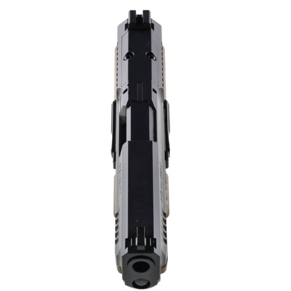 Wariant FDE/Black wyróżnia się atrakcyjnym, dwukolorowym wykończeniem – szkielet w odcieniu Flat Dark Earth (FDE) kontrastuje z czarnym zamkiem, co nie tylko nadaje mu nowoczesny wygląd, ale również zwiększa widoczność detali w warunkach taktycznych. Pistolet posiada fabryczne wycięcie pod kolimator oraz płytki montażowe, umożliwiające instalację optyki bez dodatkowych modyfikacji.