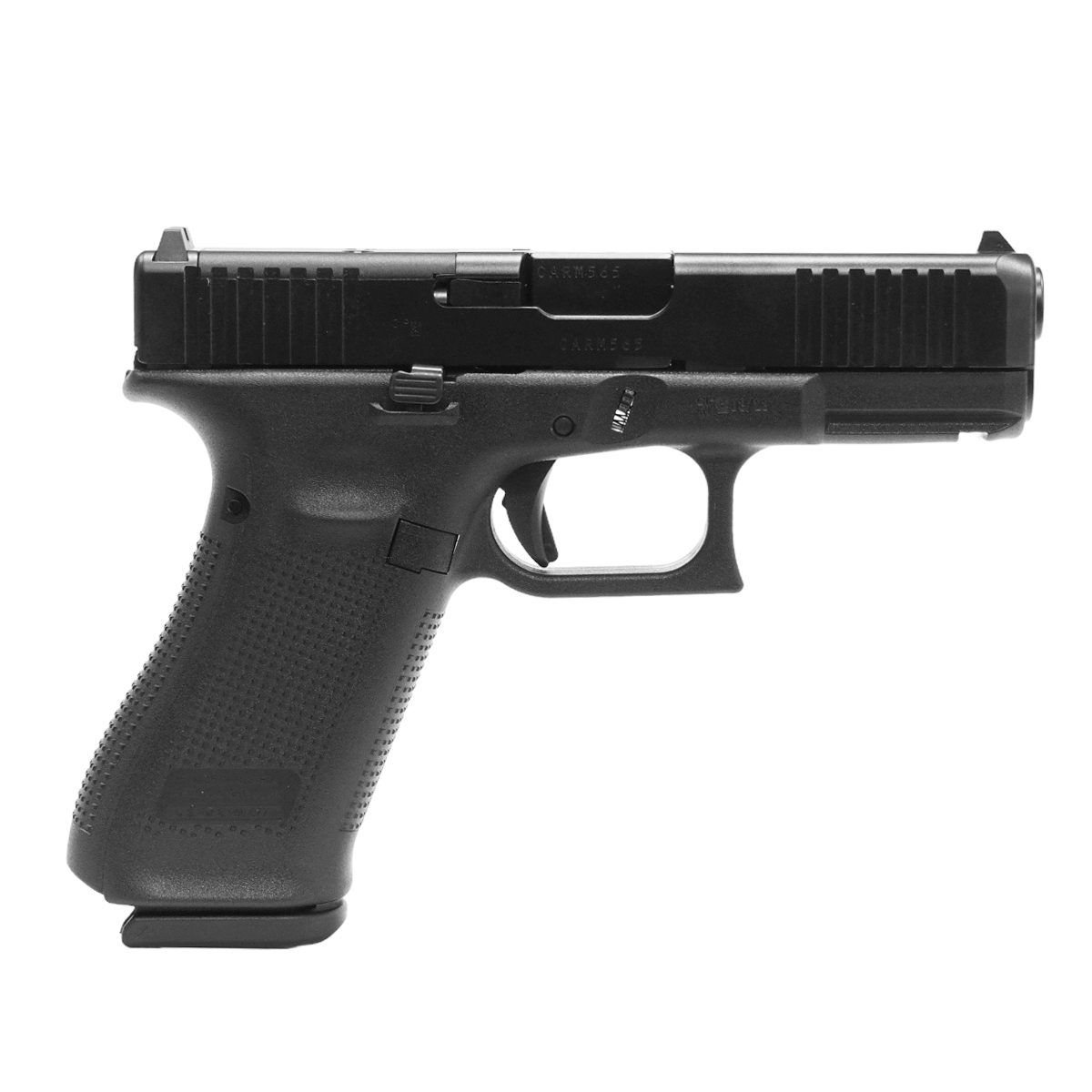 Zamek posiada sprawdzoną, twardą powłokę GLOCK nDLC w kolorze czarnym, o nierefleksyjnej powierzchni. Nacięcia na przedniej stronie zamka (FS) zapewniają dodatkową powierzchnię przydatną podczas manipulacji zamkiem, umożliwiając pewne chwycenie przez strzelca, nawet gdy dłonie są mokre lub spocone.