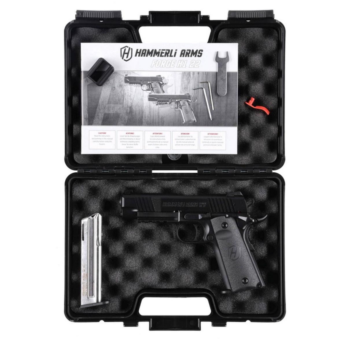 Pistolet Hammerli Arms Forge H1 to nowoczesna adaptacja legendarnego Colta 1911, dostosowana do amunicji bocznego zapłonu .22 LR. Jest to idealny wybór dla strzelców poszukujących niezawodnej i ekonomicznej broni do treningu oraz rekreacyjnego strzelania.