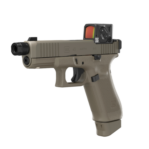 Firma GLOCK GmbH to znany producent pistoletów z Austrii, który zdobył ugruntowaną pozycję dzięki konstrukcjom cechującym się wysoką niezawodnością, prostotą i szeroką dostępnością akcesoriów. Model G45 to tak zwany „crossover” — łączy chwyt pełnowymiarowego pistoletu (modelu G17) z zamkiem i lufą kompaktowego modelu (G19), oferując ergonomię oraz kompaktowe wymiary.