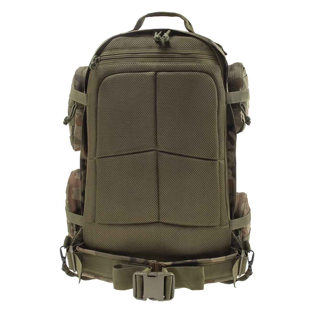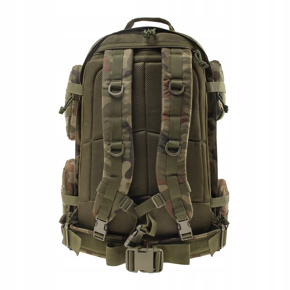 - System MOLLE/PALS na kieszeniach i szelkach, umożliwiający modularne powiększenie plecaka i podpięcie narzędzi.
