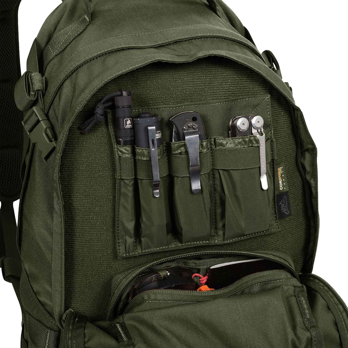 Helikon EDC Pack Olive Green - to najnowsza propozycja niewielkiego plecaka przeznaczonego na krótkie wyprawy w terenie renomowanej firmy Helikon. Lekki o pojemności 21 litrów wykonany z wytrzymałej Cordury® o mocnym splocie 500D. Plecak sprawdzi się zarówno w codziennym użytkowaniu, jak i w warunkach poligonowych, gdy nie potrzebujemy zabrać ze sobą dużej ilości ekwipunku. Posiada dwie komory: pierwsza duża na wkład hydracyjny oraz większe przedmioty. Druga została obszyta wewnątrz materiałem welurowym umożliwiającym mocowanie na rzep różnego typu organizerów i kieszeni. Komory zamykane są na wysokiej jakości zamki błyskawiczne YKK.