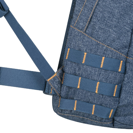 Na powierzchni plecaka naszyte zostały taśmy kompatybilne z systemem MOLLE/PALS pozwalające na powiększenie pojemności przez przyczepienie różnych zasobników i ładownic.