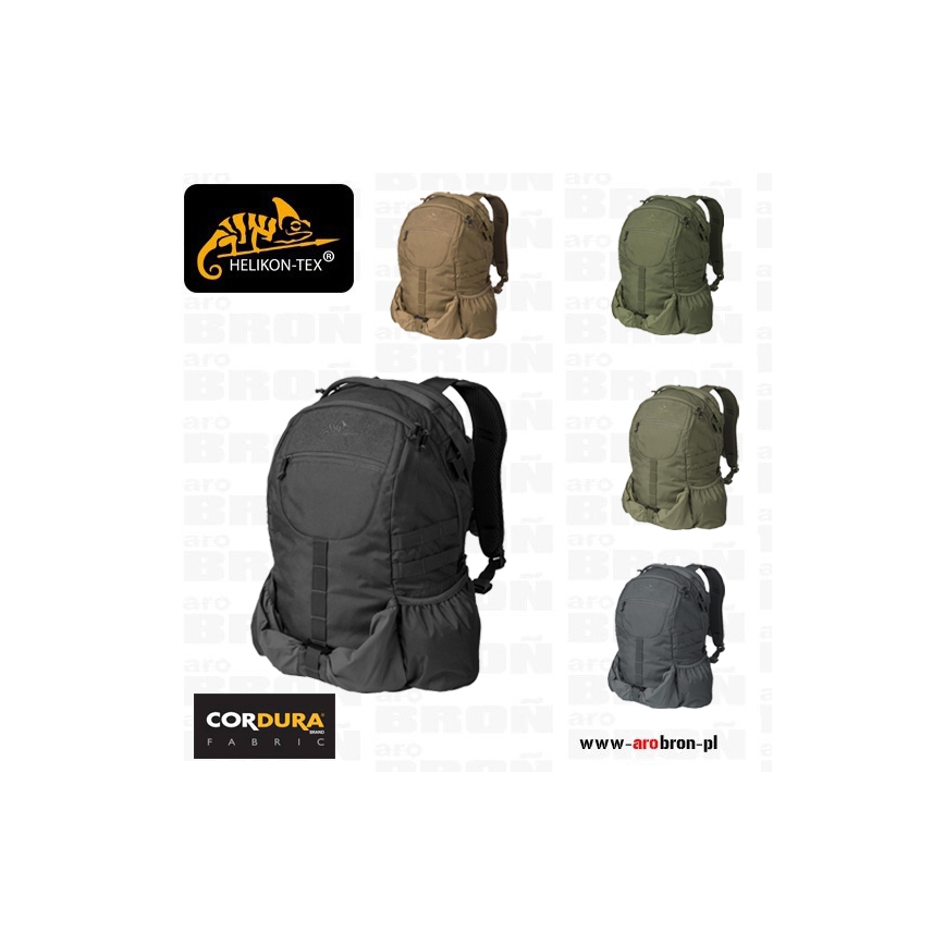Helikon Raider - to zaawansowany, a zarazem uniwersalny plecak na każdą okazję o pojemności 20 litrów. Plecak jest bardzo wytrzymały, dzięki orginalnej 100% Cordurze, o mocnym splocie 500D. W głównej komorze znajdują się panel velcro do dopięcia insertów - kompatybilny z systemem Helikon Versatile Insert System, kieszeń zakończona elastyczną taśmą oraz kieszeń na suwak.  Kieszeń na okulary lub elektronikę została usytuowana na klapie zamykającej główną komorę, dzięki temu, nie trzeba otwierać całej klapy, aby wyciągnąć drobiazgi. Kieszeń wyłożona została miękkim rzepem. W środku komory głównej znajdziemy również klamrę z taśmą przeznaczoną do mocowania systemu hydracyjnego.