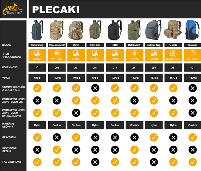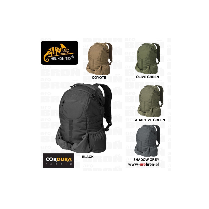 Helikon Raider - to zaawansowany, a zarazem uniwersalny plecak na każdą okazję o pojemności 20 litrów. Plecak jest bardzo wytrzymały, dzięki orginalnej 100% Cordurze, o mocnym splocie 500D. W głównej komorze znajdują się panel velcro do dopięcia insertów - kompatybilny z systemem Helikon Versatile Insert System, kieszeń zakończona elastyczną taśmą oraz kieszeń na suwak. Kieszeń na okulary lub elektronikę została usytuowana na klapie zamykającej główną komorę, dzięki temu, nie trzeba otwierać całej klapy, aby wyciągnąć drobiazgi. Kieszeń wyłożona została miękkim rzepem. W środku komory głównej znajdziemy również klamrę z taśmą przeznaczoną do mocowania systemu hydracyjnego.