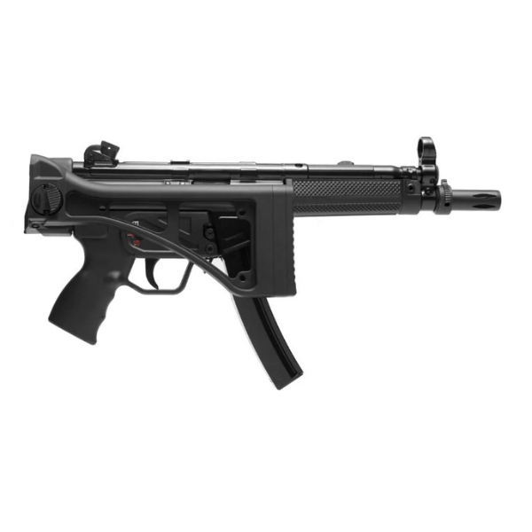 Mertsav MSG‑9A to półautomatyczny pistolet samopowtarzalny kalibru 9×19 mm, skonstruowany na bazie legendarnego MP5. Wyprodukowany na licencji Heckler & Koch, łączy klasyczny wygląd z nowoczesnymi rozwiązaniami technicznymi, zachowując pełną kompatybilność z oryginalnymi częściami HK. Przeznaczony do zastosowań taktycznych, ochrony osobistej oraz kolekcjonerskich, wyróżnia się kompaktowymi wymiarami, ergonomiczną budową i wysoką niezawodnością działania.