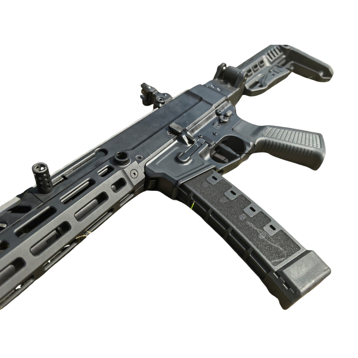 Dzięki zastosowaniu systemu odrzutu zamka swobodnego (blowback) oraz strzelaniu z zamka zamkniętego, MOHAC zapewnia wysoką celność i niezawodność działania. Dwa warianty długości lufy – 4.8” oraz 8” – umożliwiają wybór między maksymalną mobilnością a lepszą balistyką i zasięgiem. Kolba rozkładana i rozsuwana w 5 pozycjach pozwala dopasować broń do indywidualnych potrzeb strzelca.