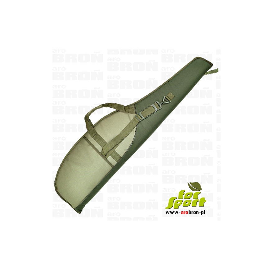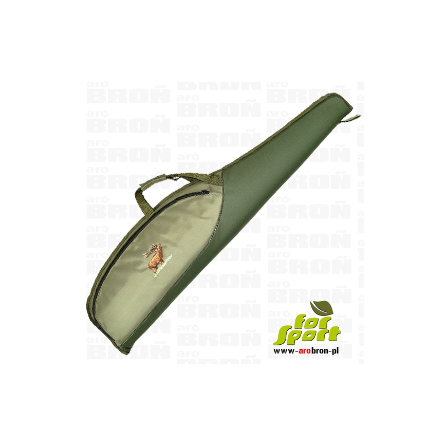Pokrowiec na sztucer z lunetą, z tkaniny impregnowanej typu cordura, z wklejoną gąbką obszytą miekkim chroniącym materiałem, z pojemną kieszenią boczną zapinaną najgrubszym możliwym suwakiem, długość kieszeni: 62 cm. Ścianka kieszeni usztywniona jest grubą pianką karimatową co stanowi dodatkowe mocne zabezpieczenie przenoszonych elementów wyposażenia.