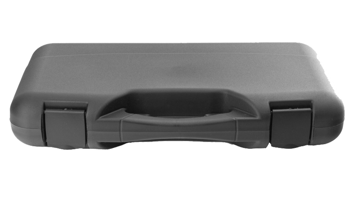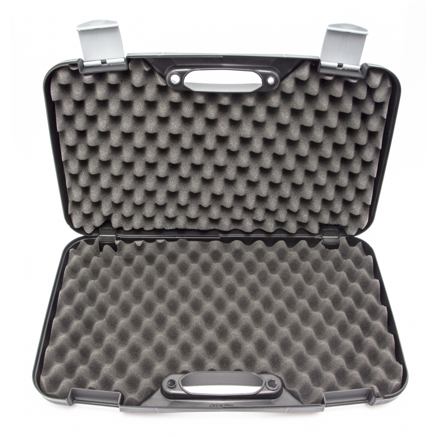 Kufer, walizka do transportu broni 49x24x9 cm, wykonany z wytrzymałego tworzywa, wyłożony grubą gąbką o strukturze tzw. szczęki rekina – tak aby broń podczas transportu nie miała możliwości przesuwania się.