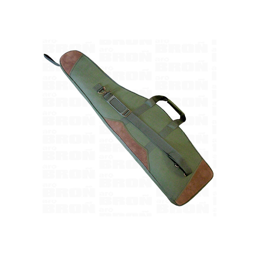 Pokrowiec na sztucer firmy Bistana w kolorze zielonym wykończony wstawkami z brązowego zamszu.